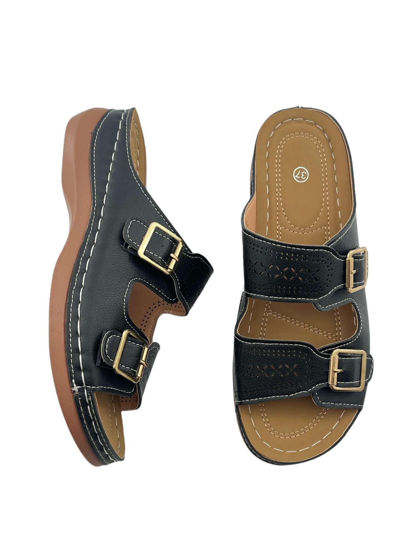 Fashionable Casual Buckled-Strap Platform Wedge Sandals (Slip-On Style)