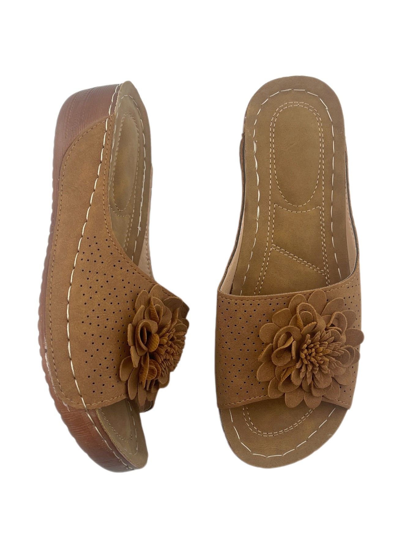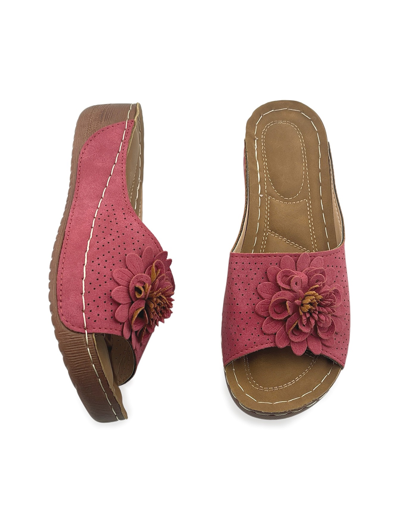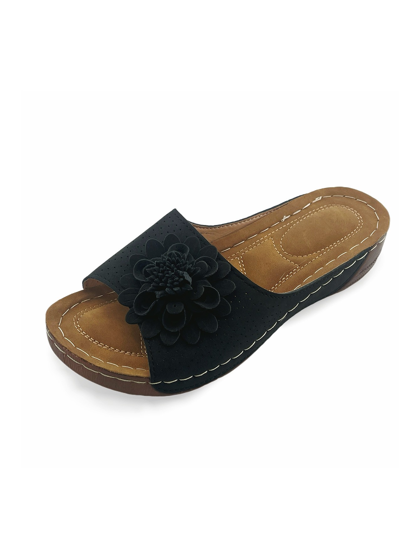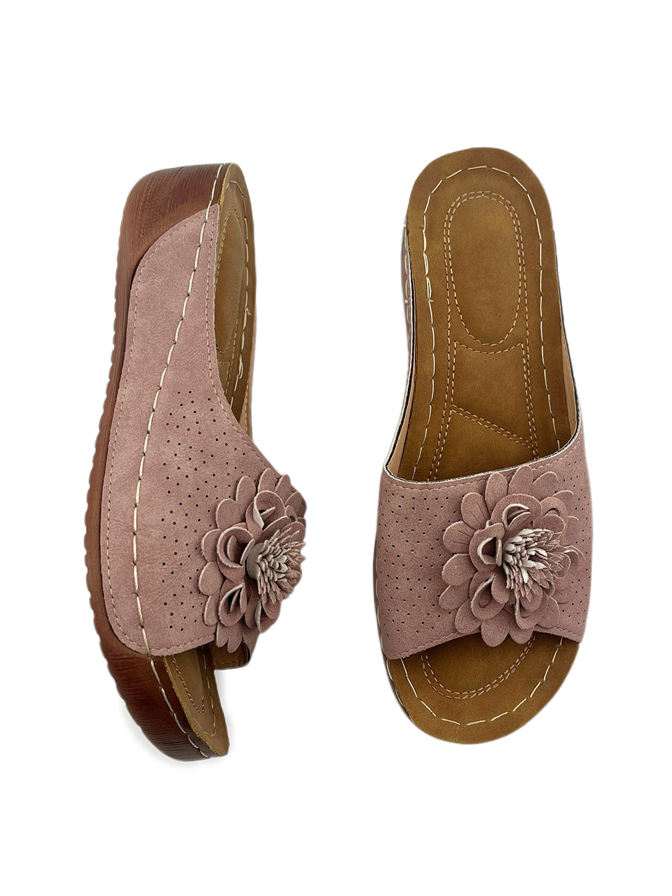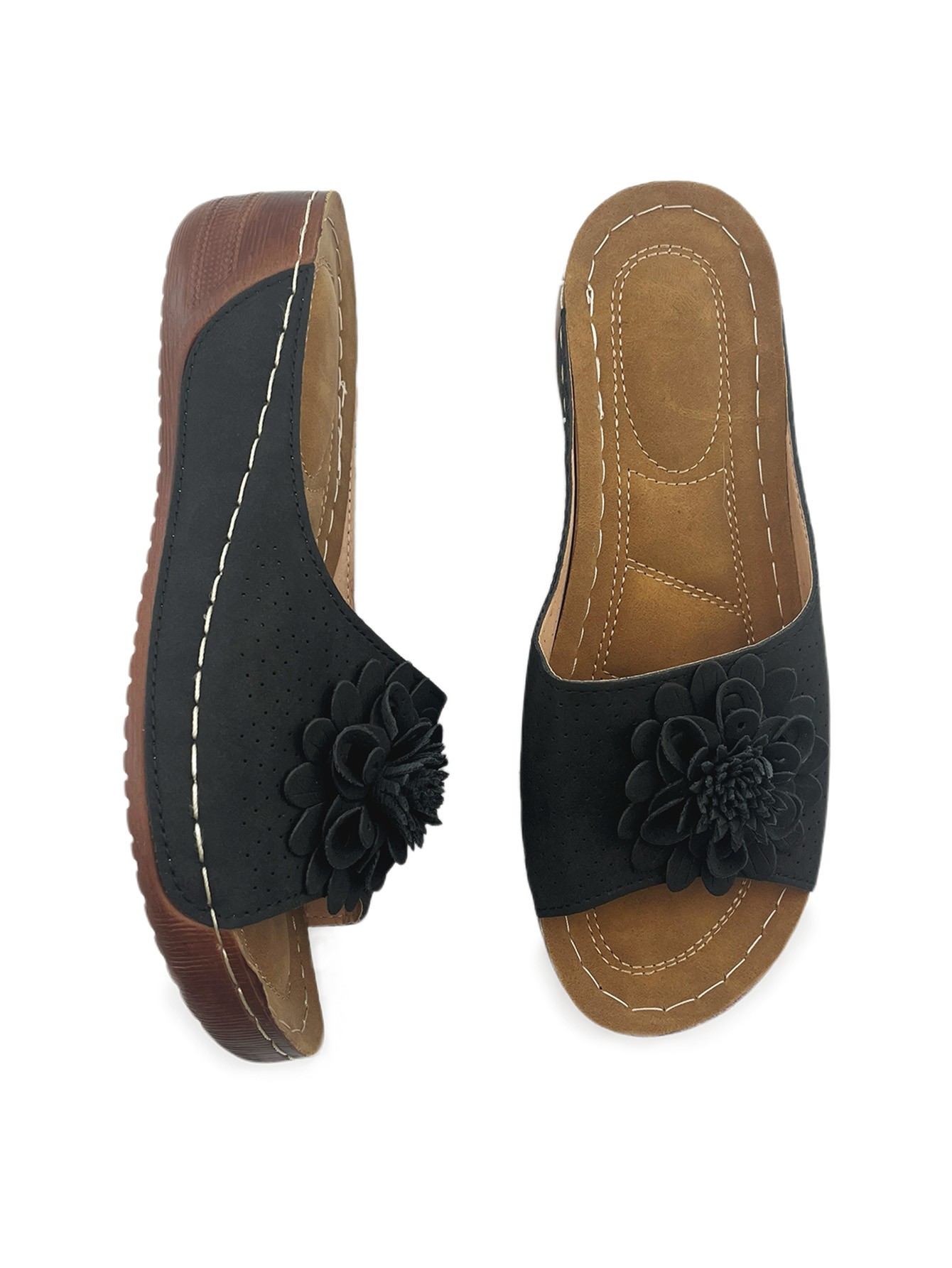 Fashionable Outer-wear Non-slip Wedge Open-toe Flower Slide Sandals