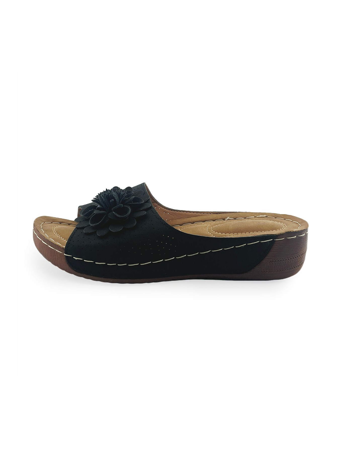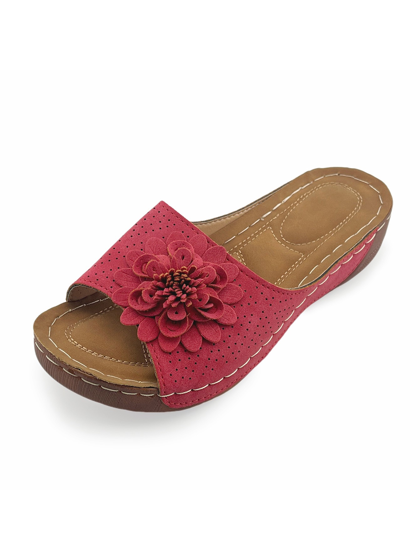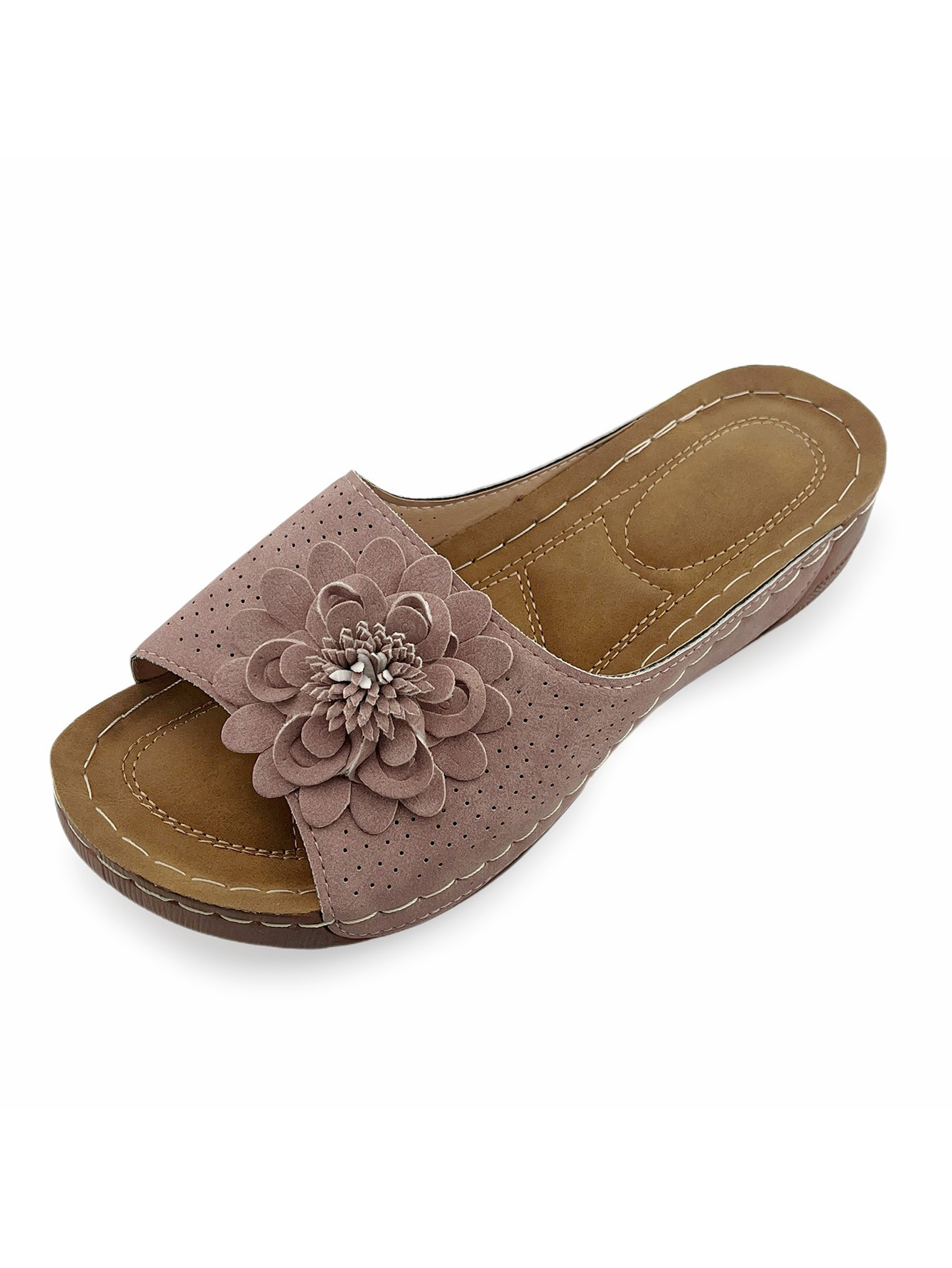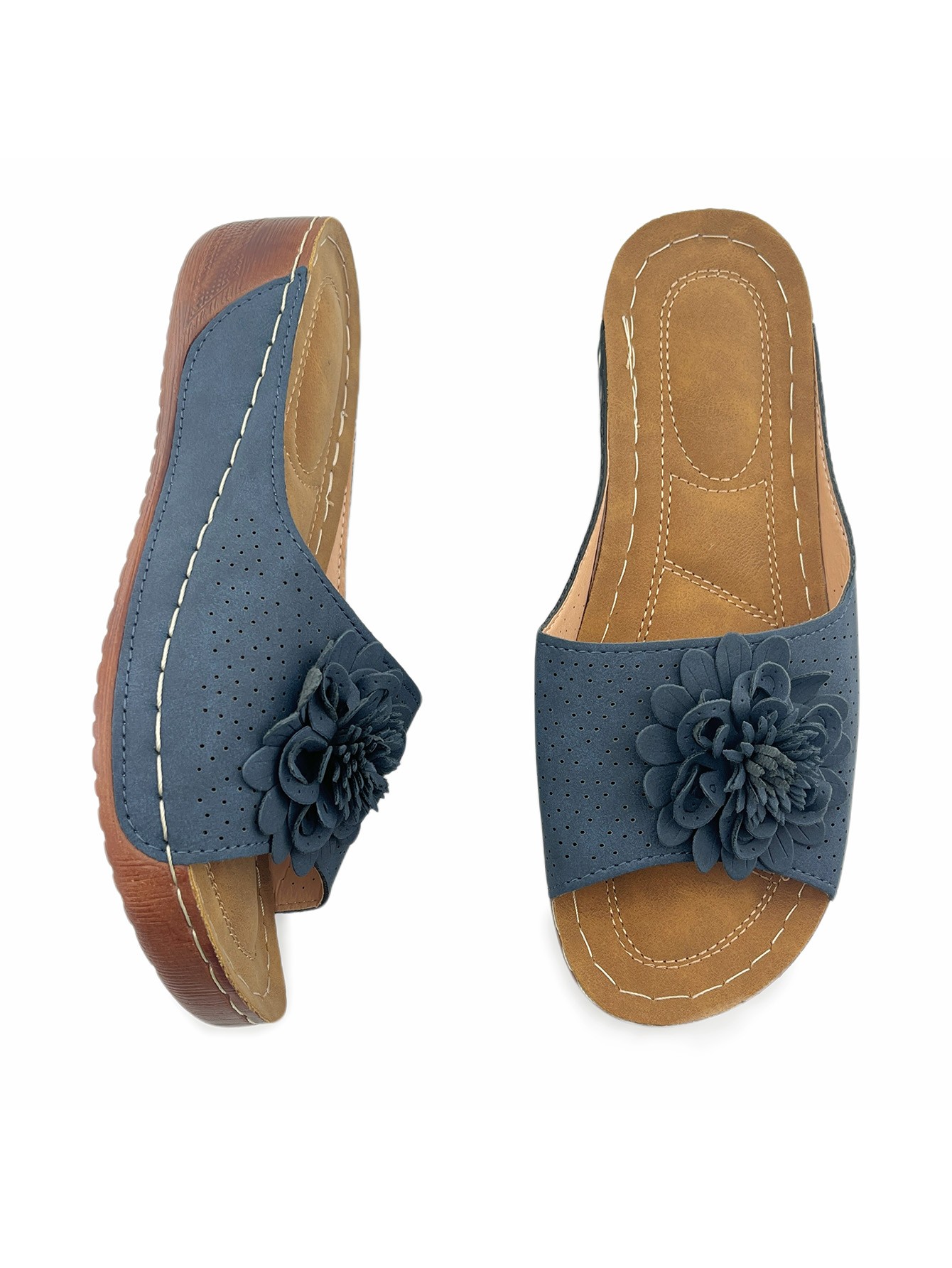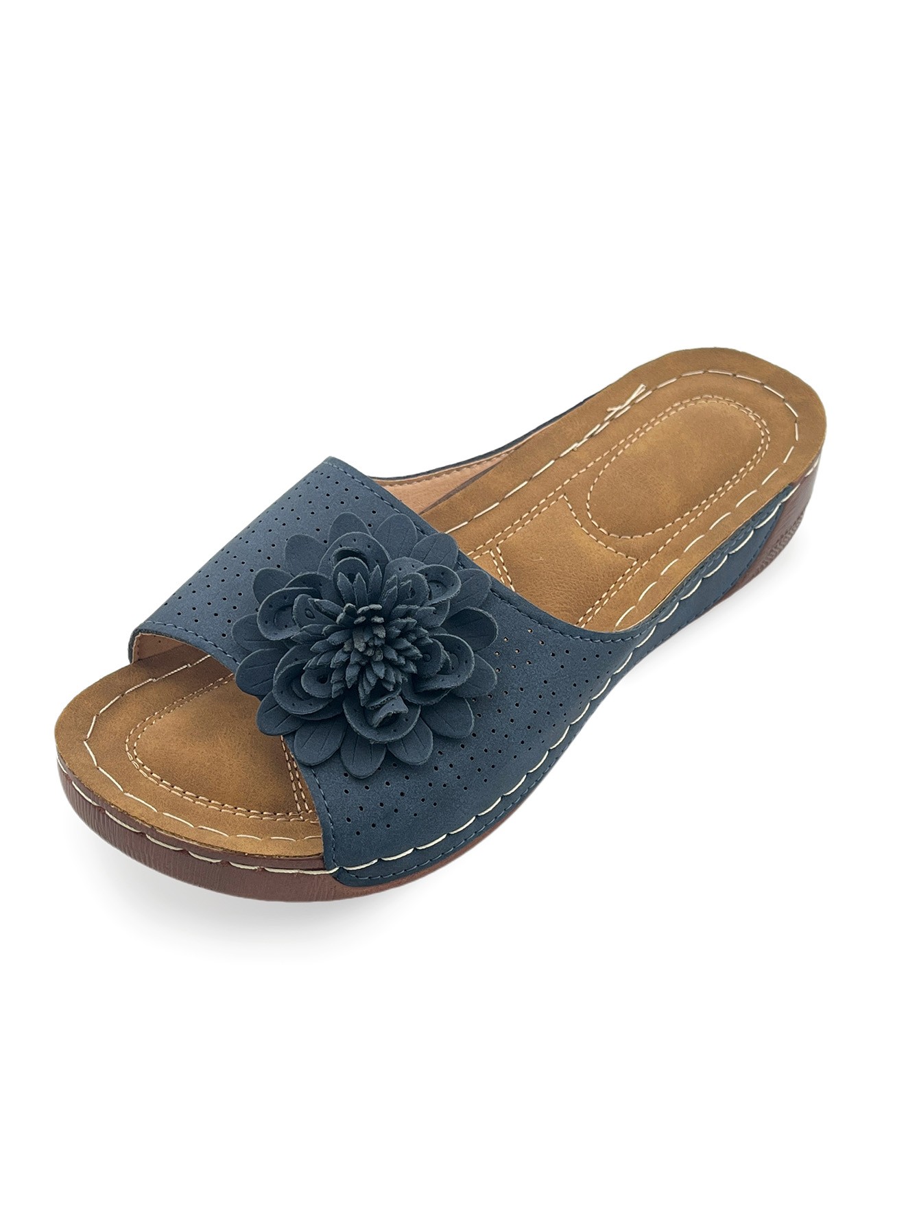 Fashionable Outer-wear Non-slip Wedge Open-toe Flower Slide Sandals