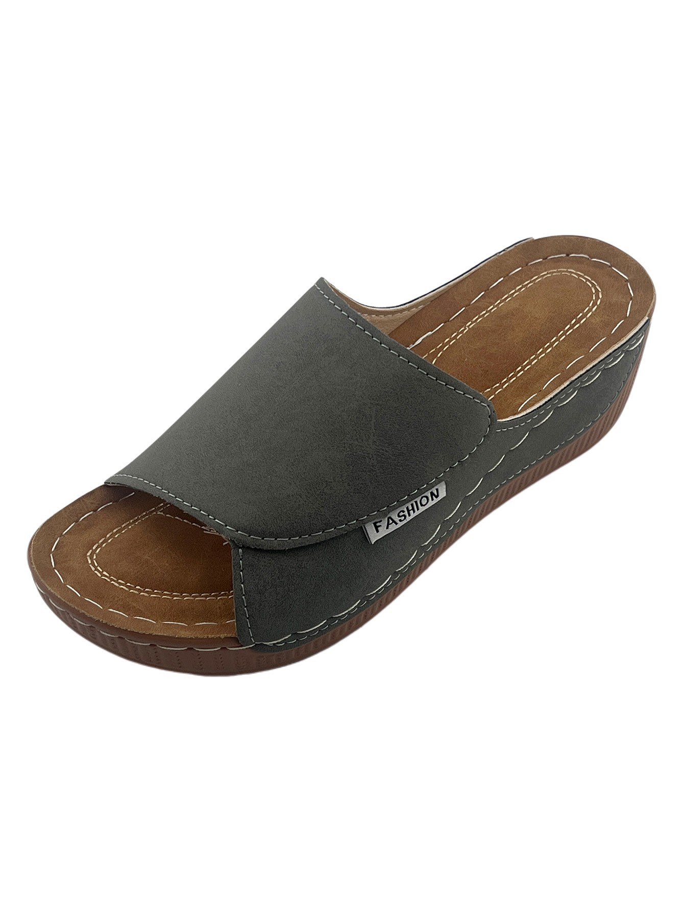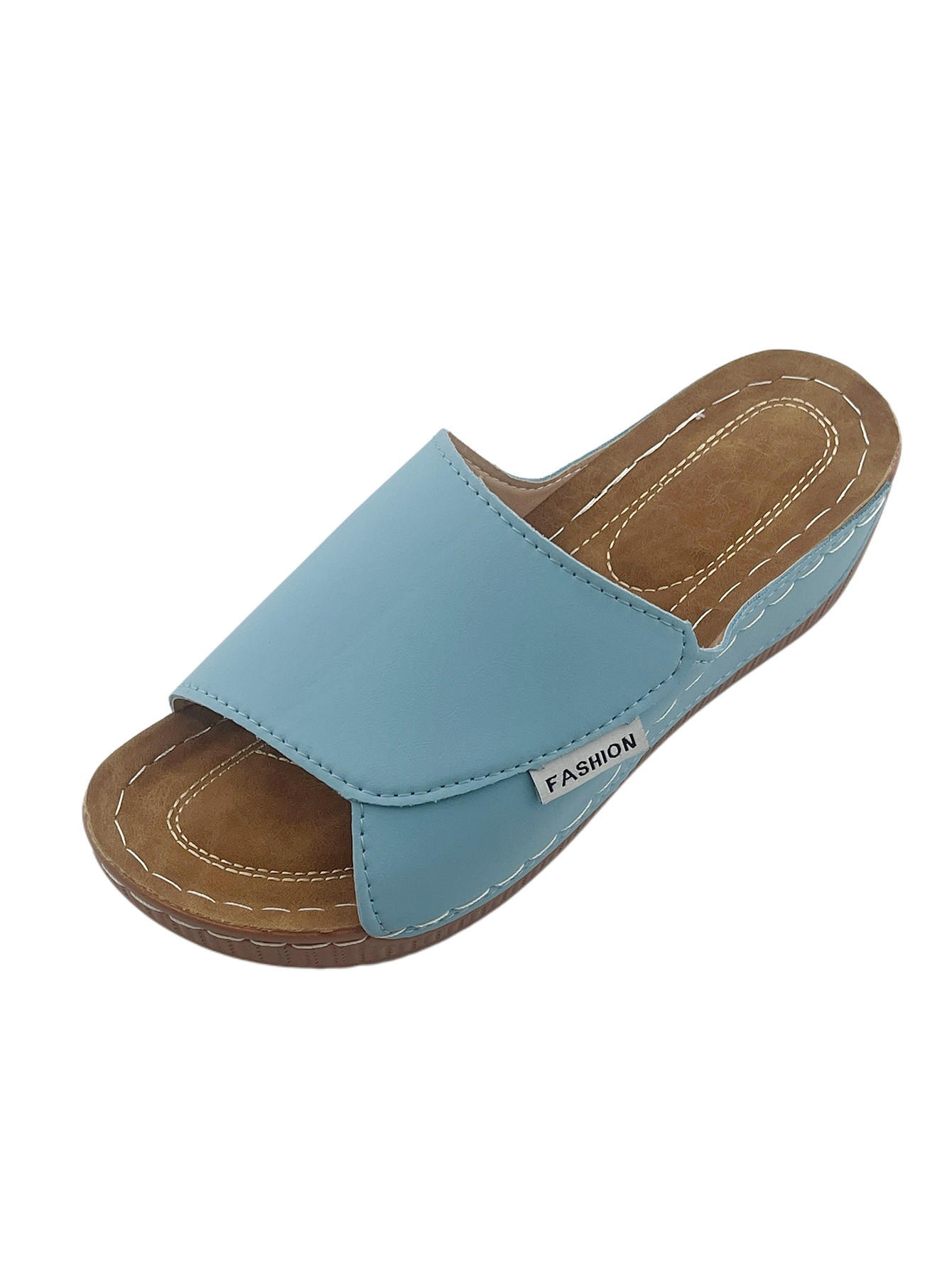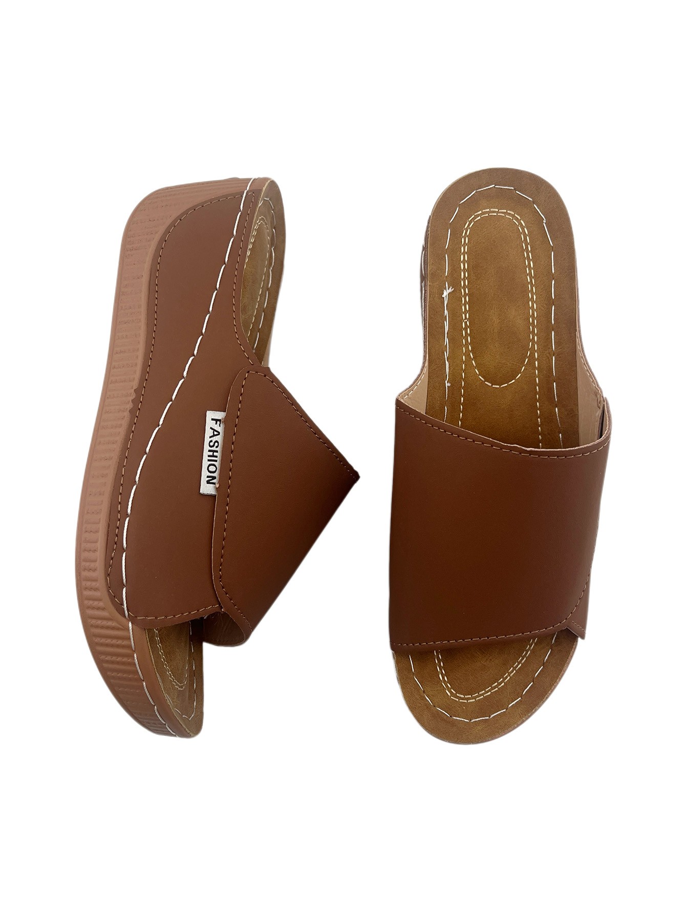 Fashionable Slip-on Flip-flops with Wedge Heel and Thick Sole