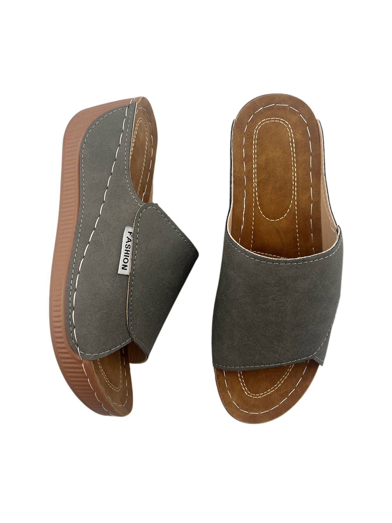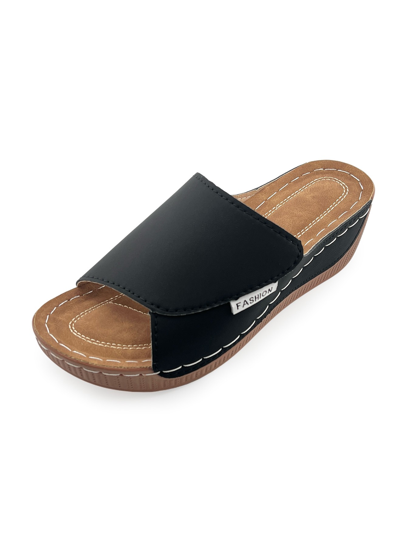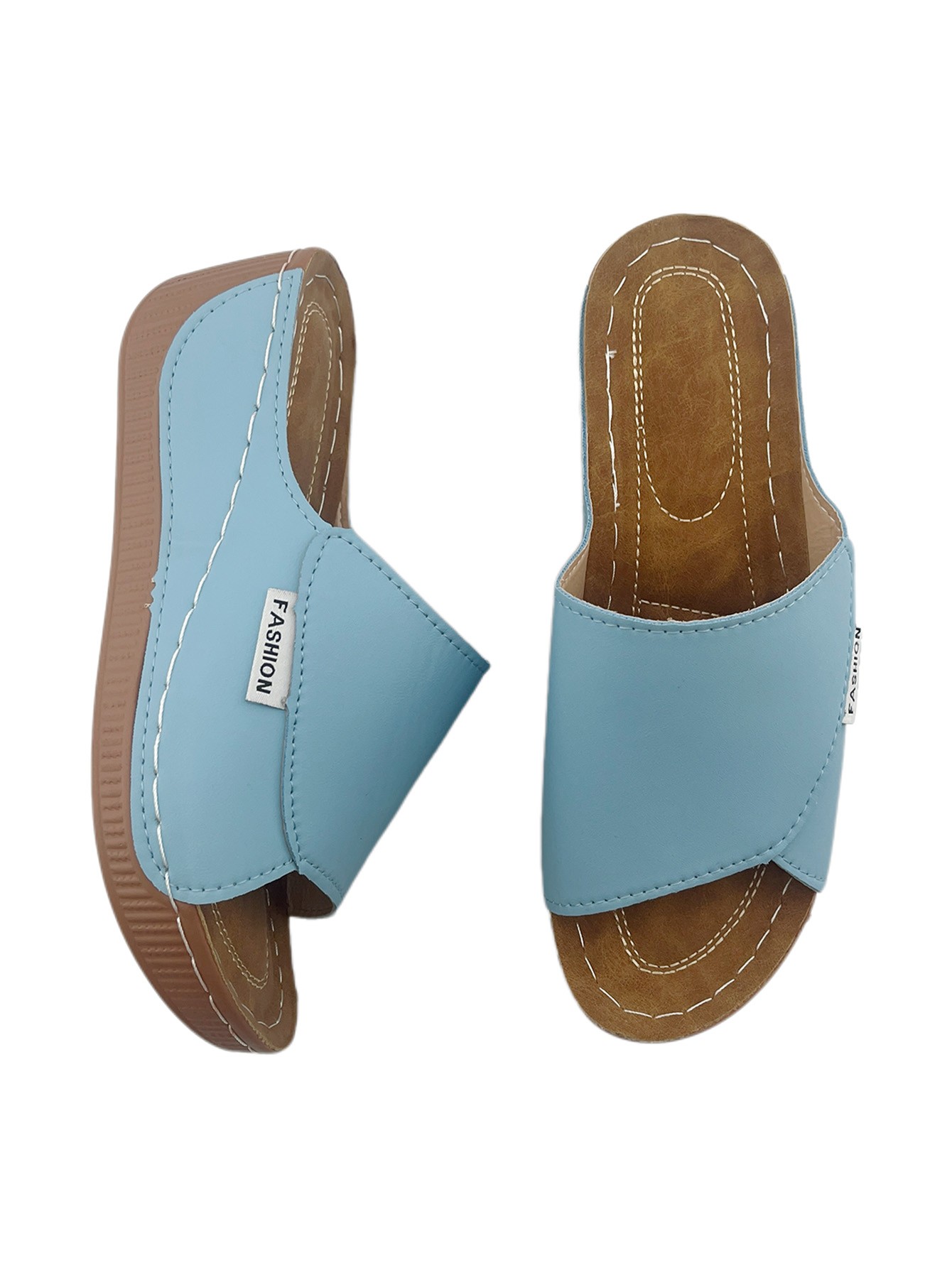 Fashionable Slip-on Flip-flops with Wedge Heel and Thick Sole