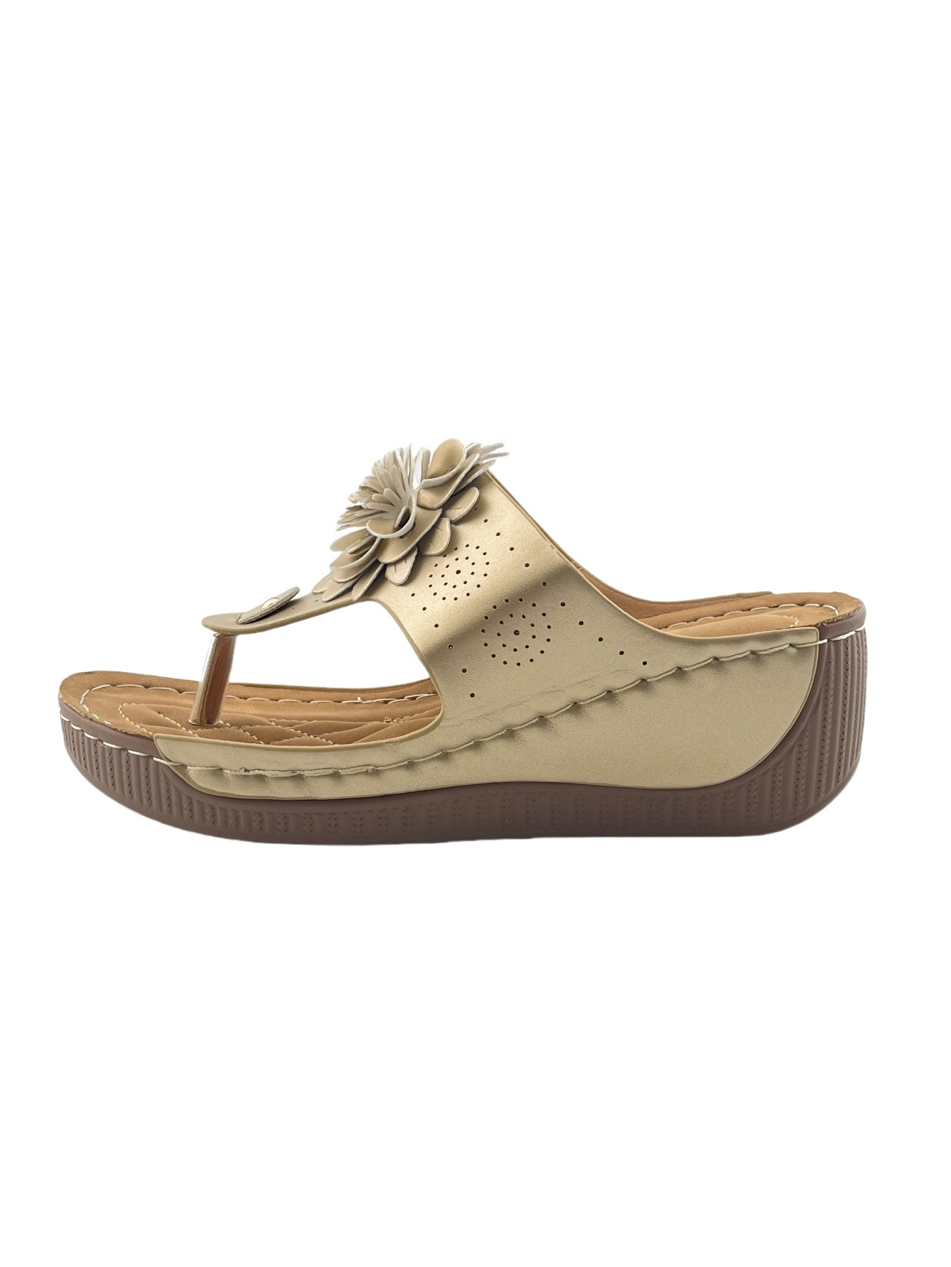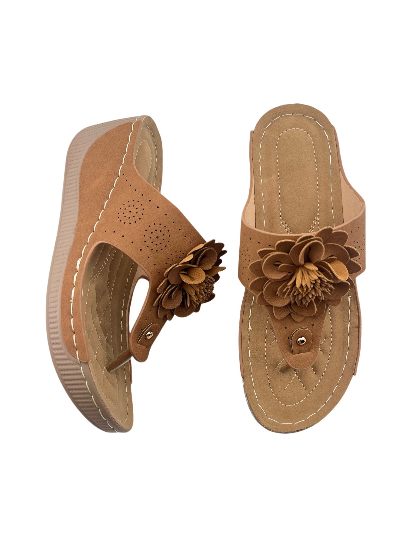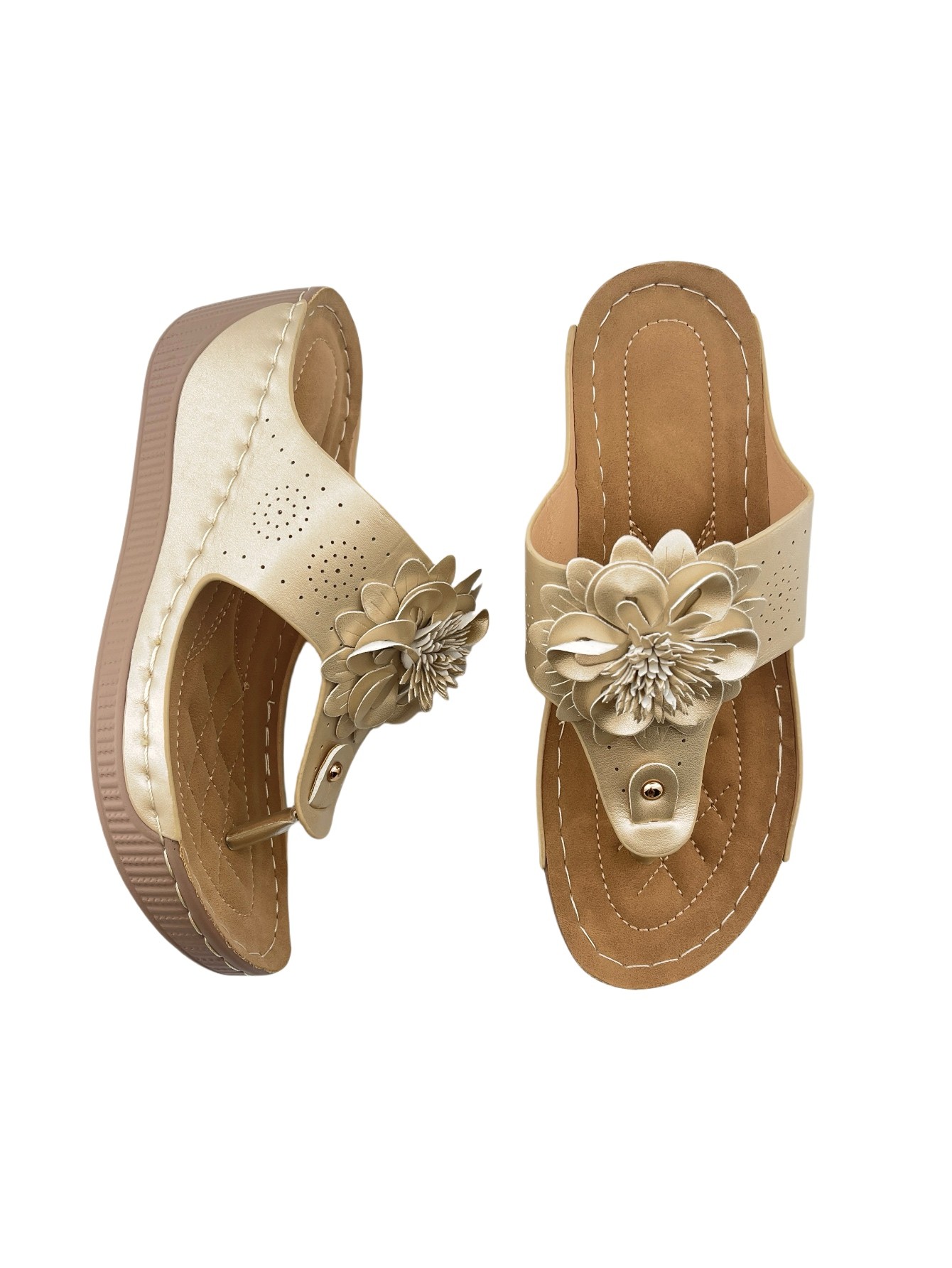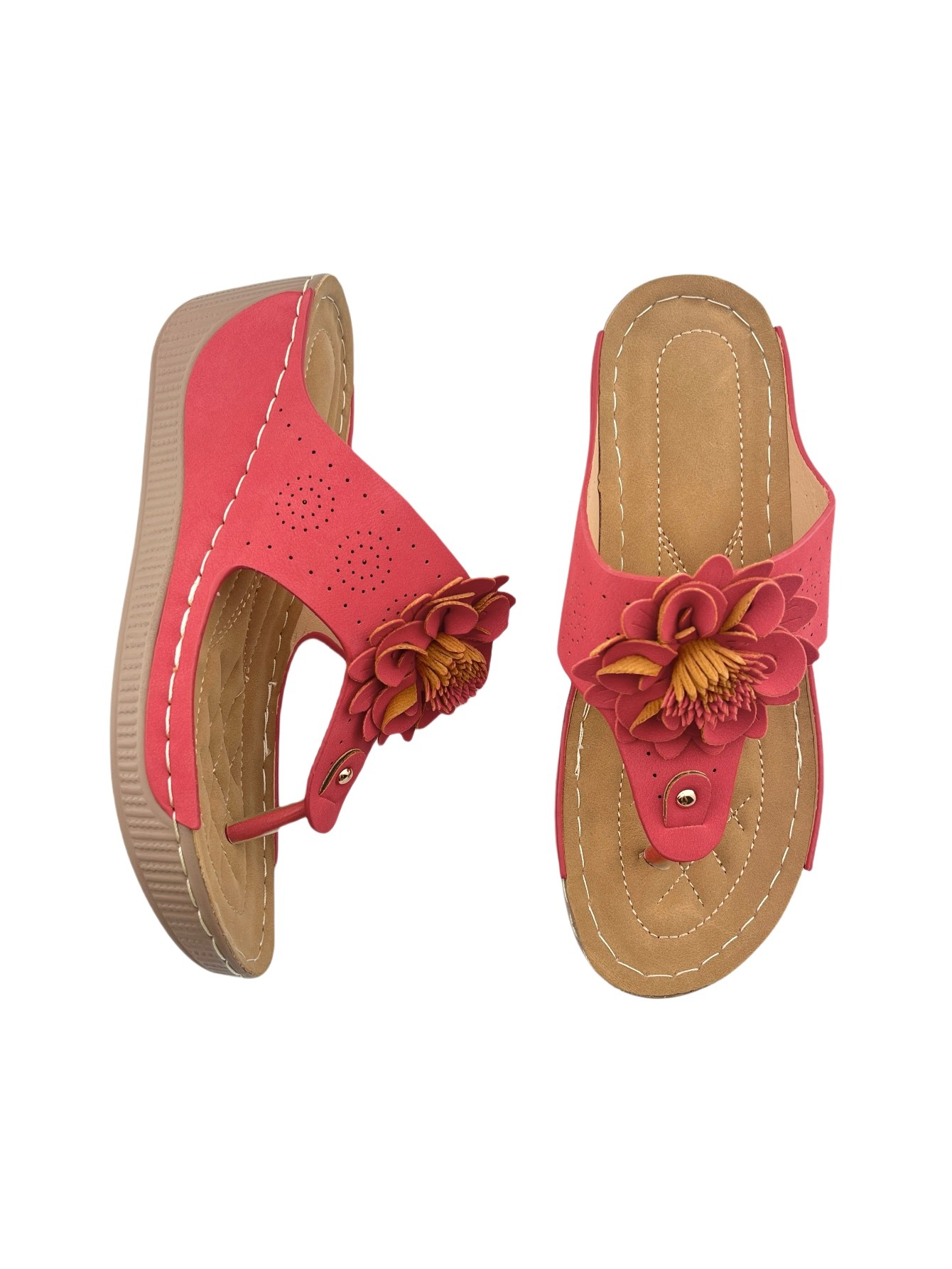 Flip-flops with Wedge Heels, Breathable Design and Floral Patterns
