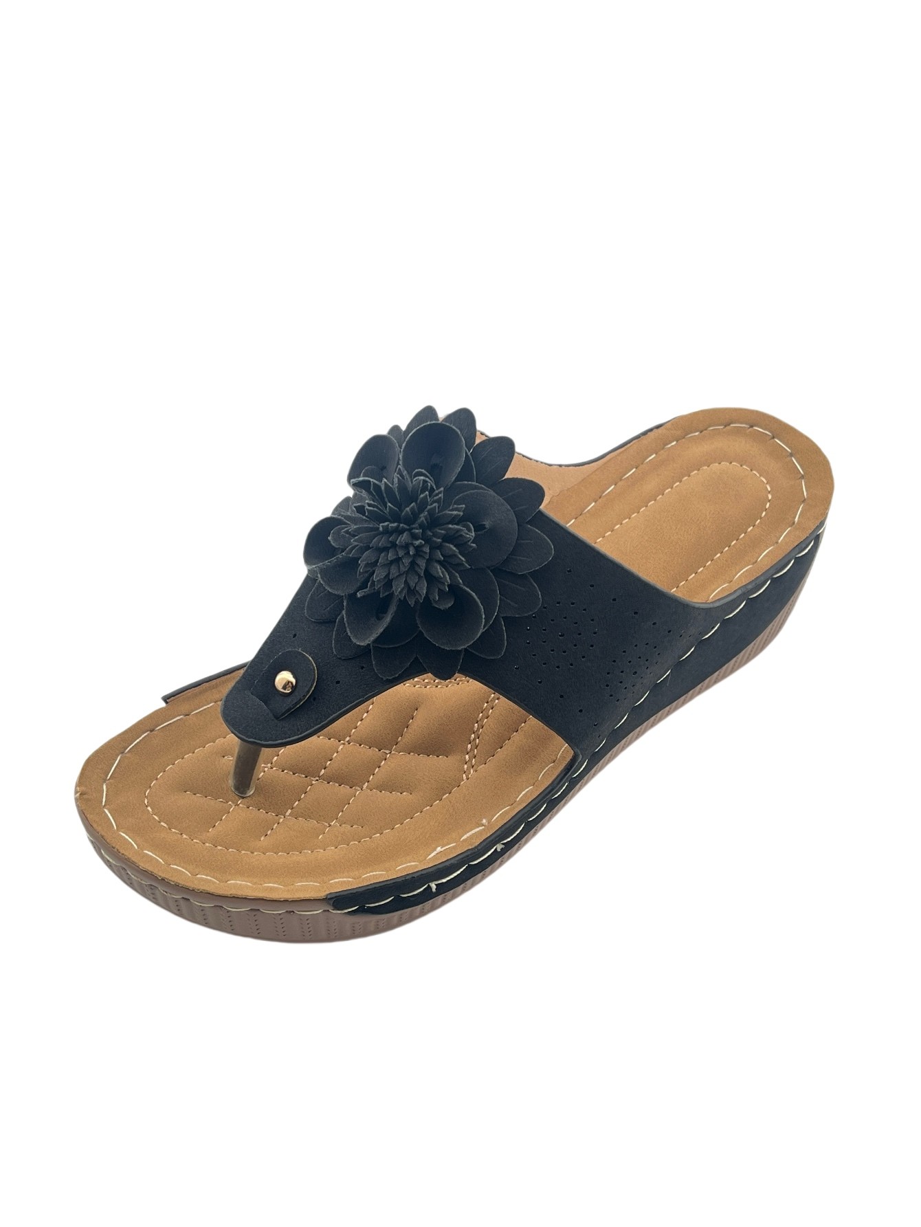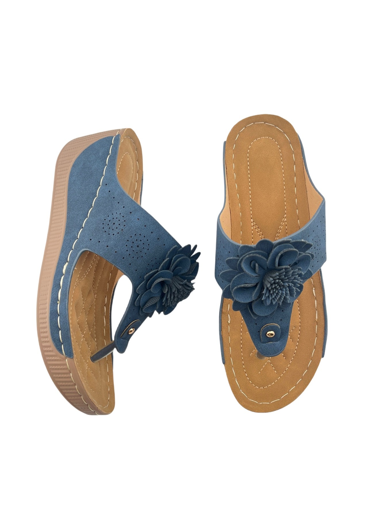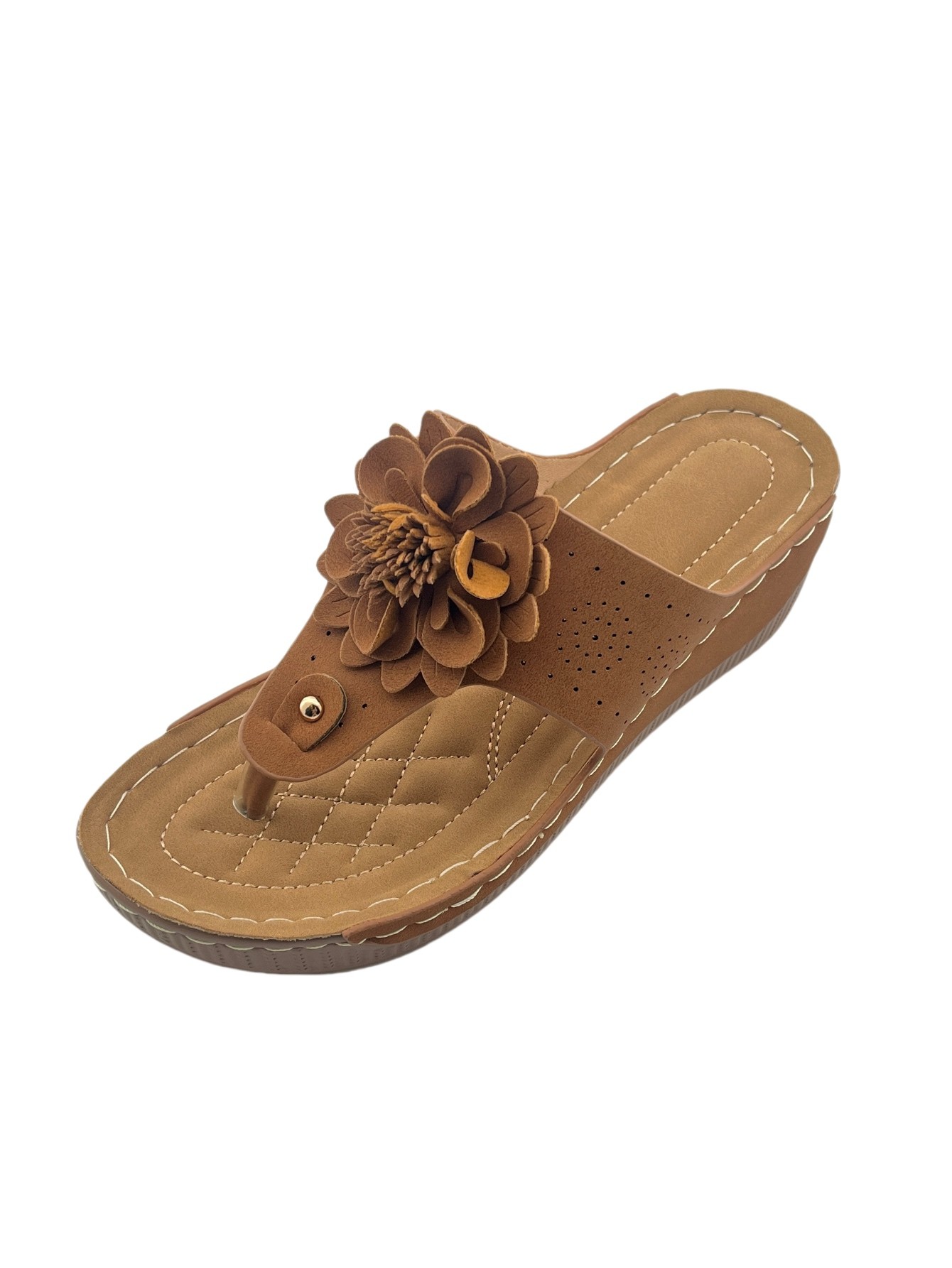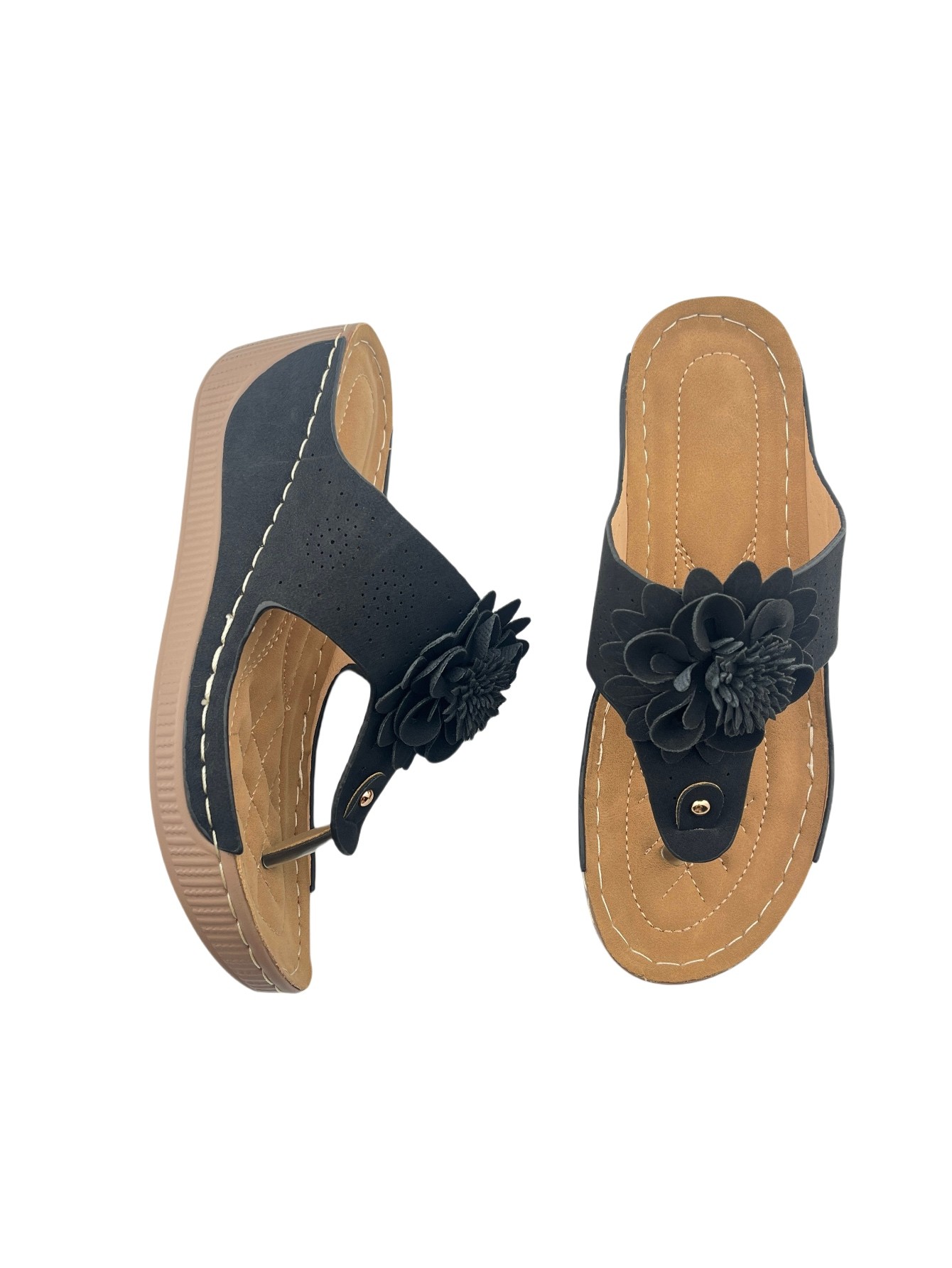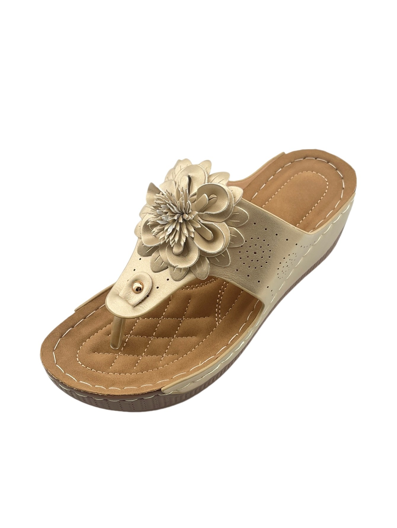 Flip-flops with Wedge Heels, Breathable Design and Floral Patterns