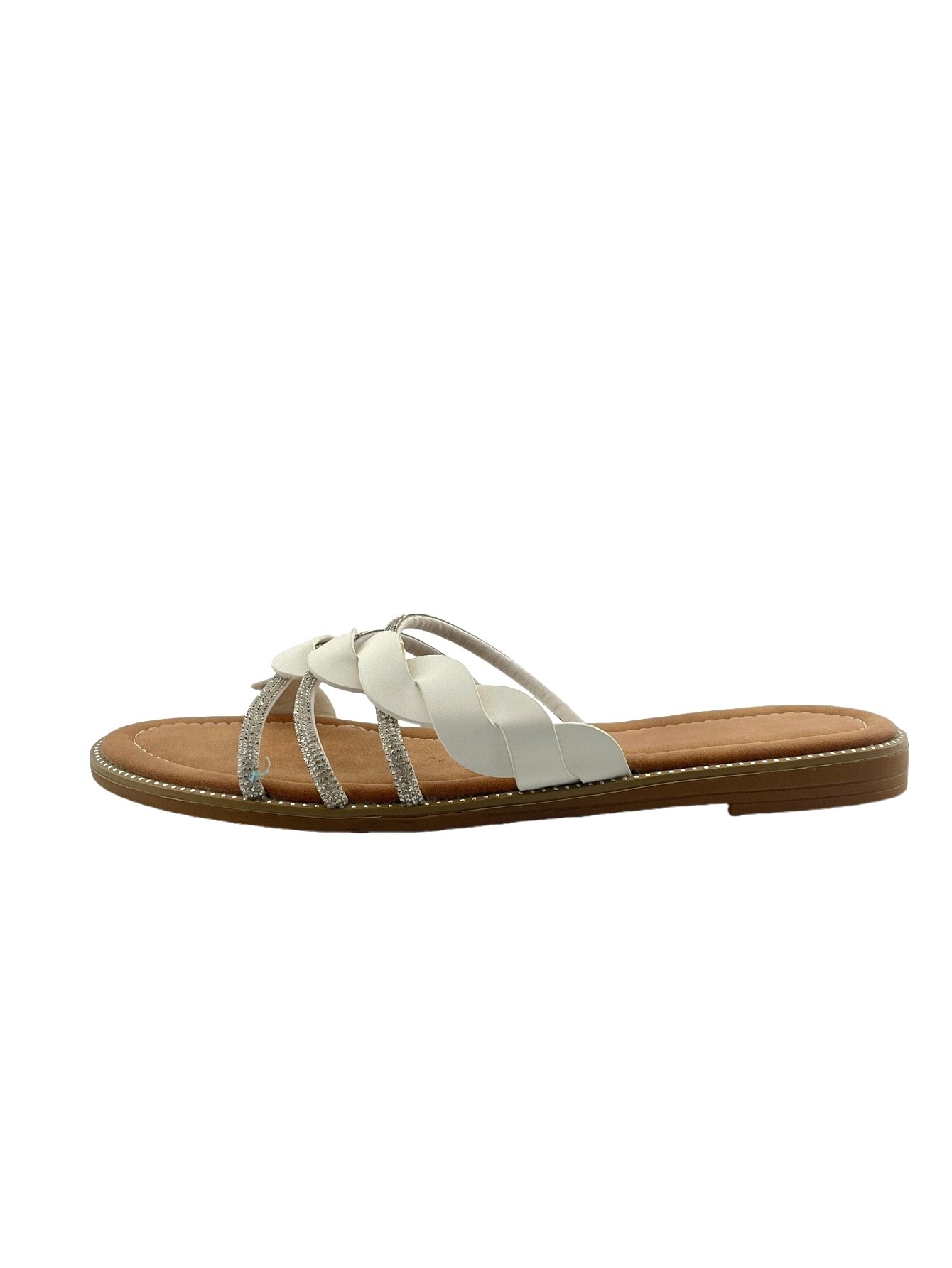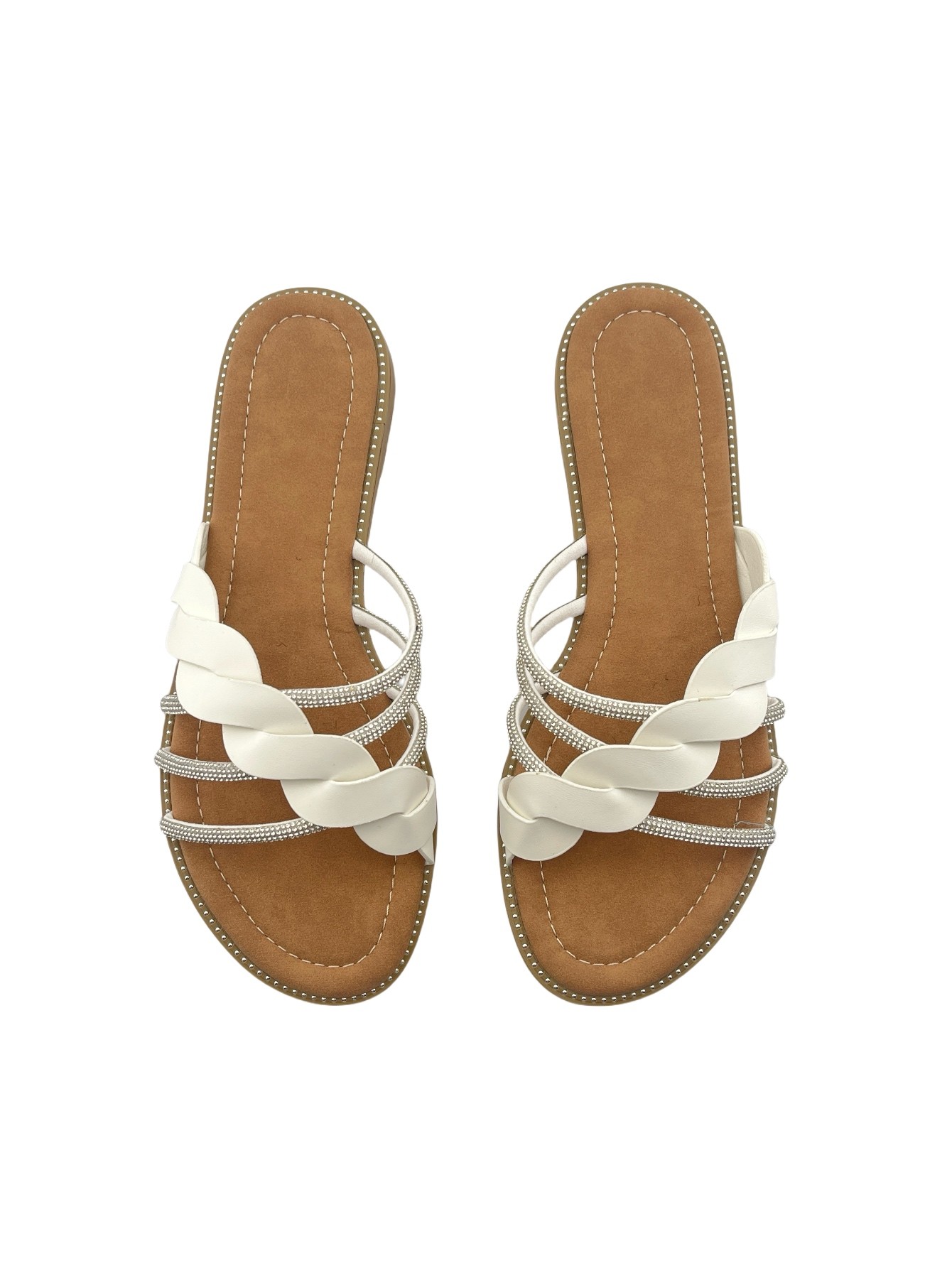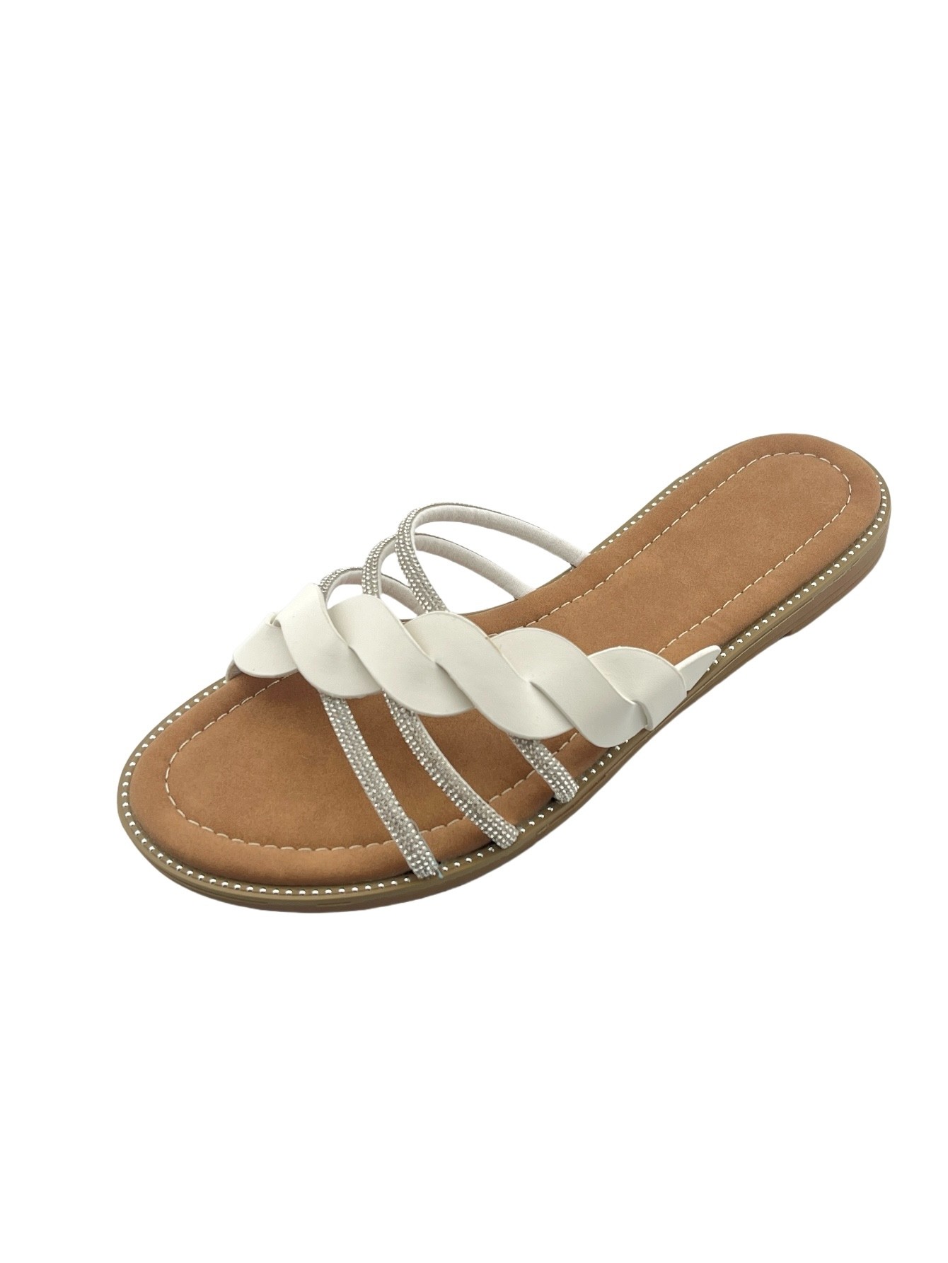Outer-Wear Rhinestone Crisscross Flat Sandals (Flip-Flop Style)