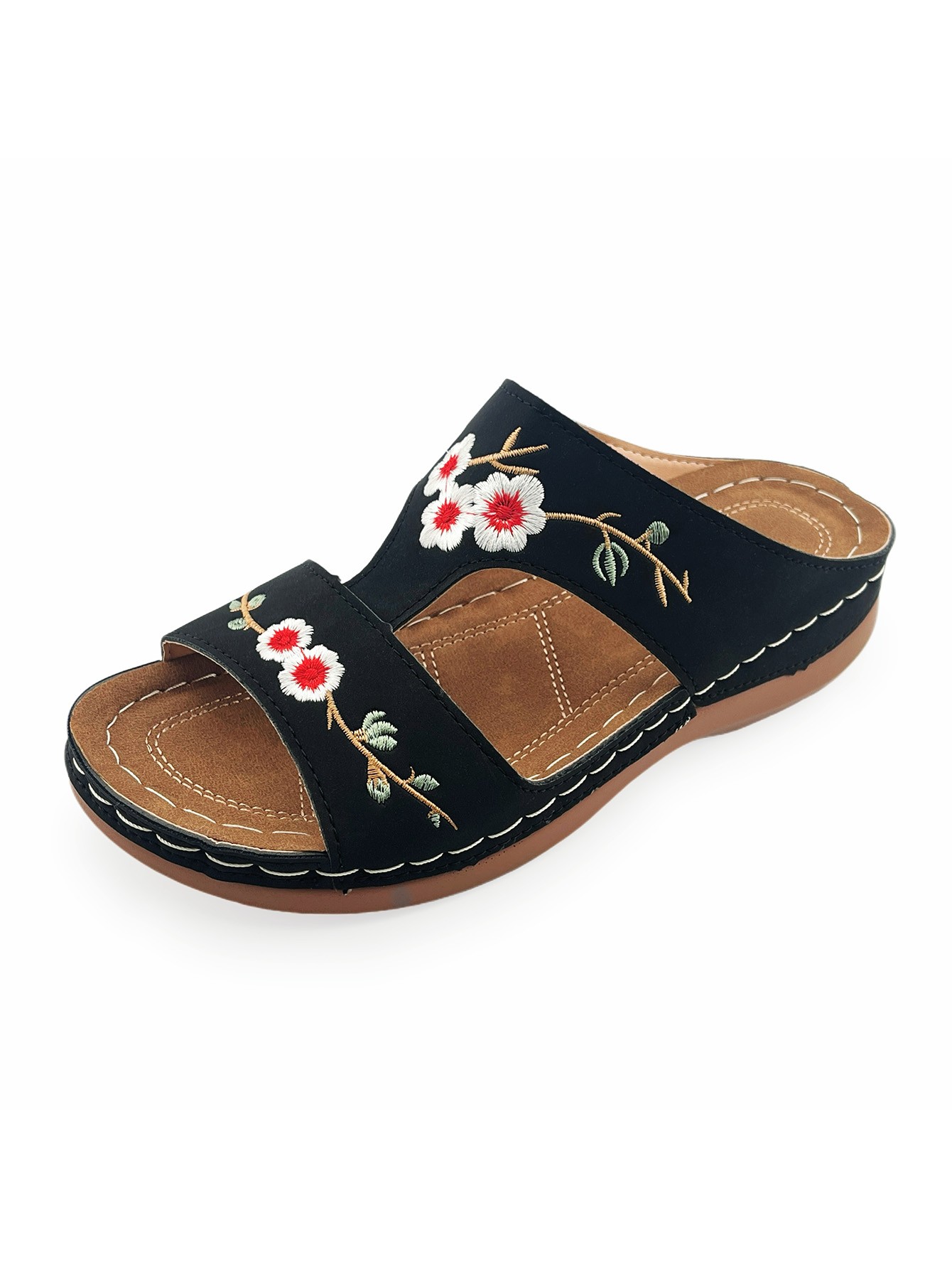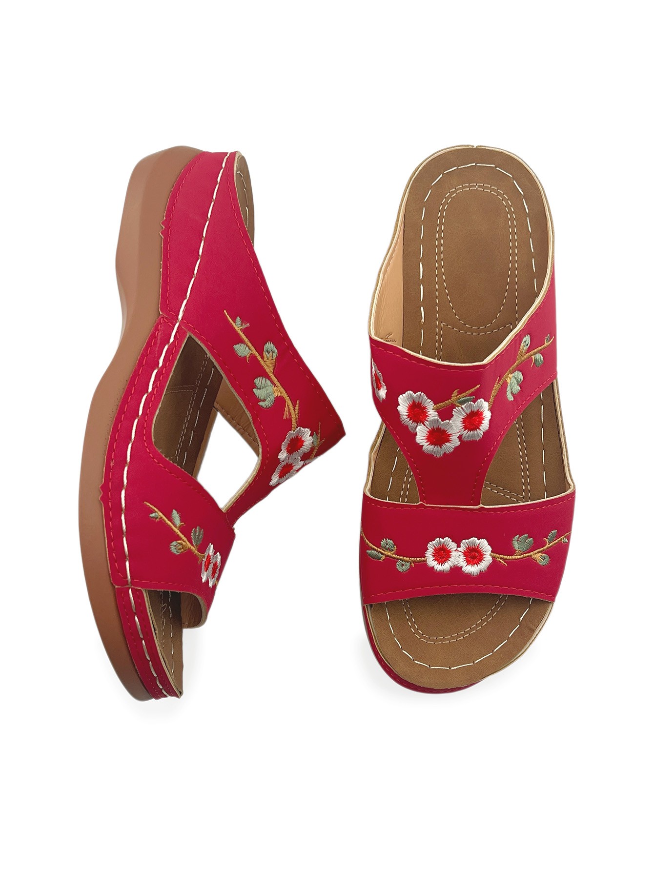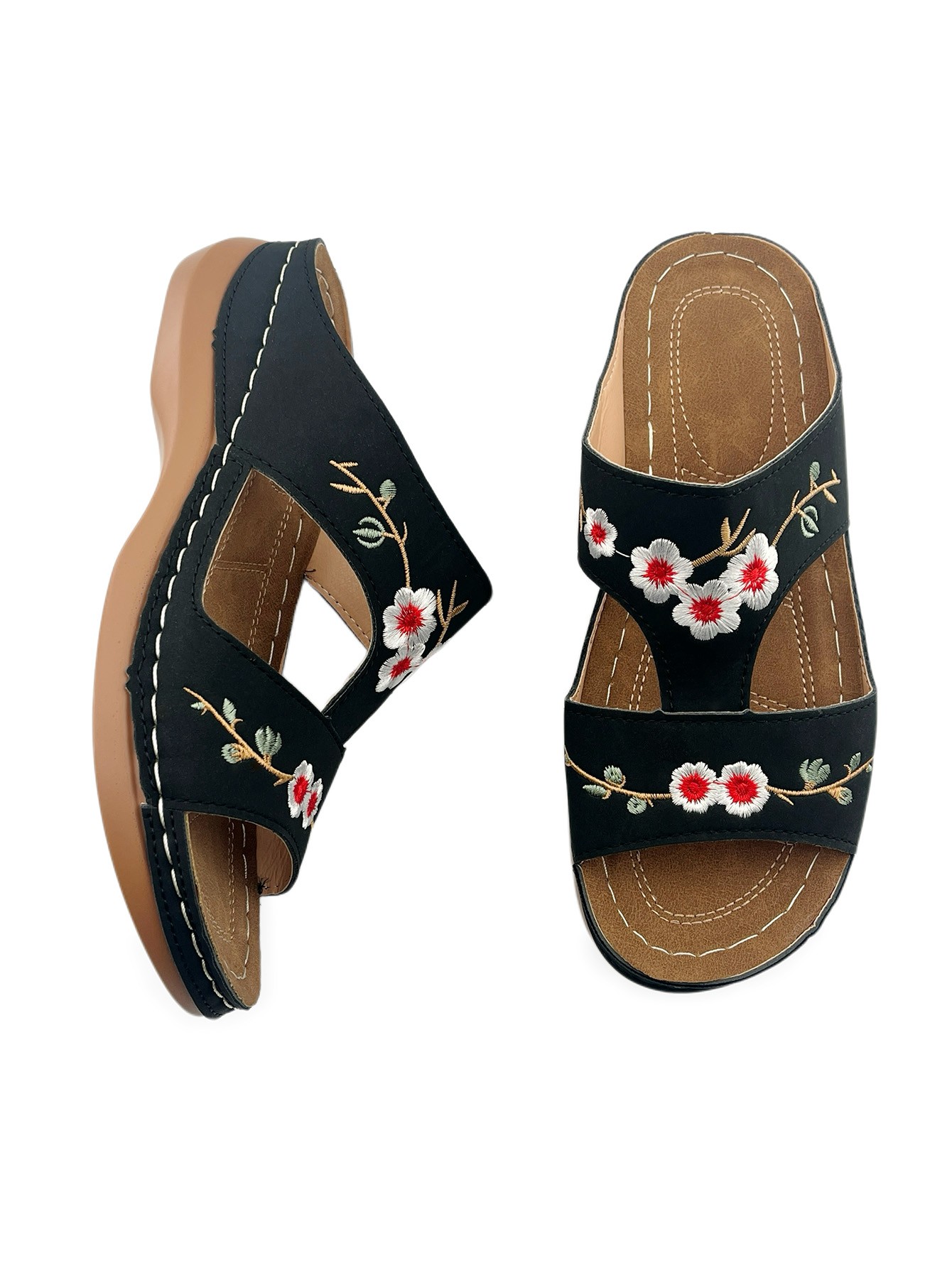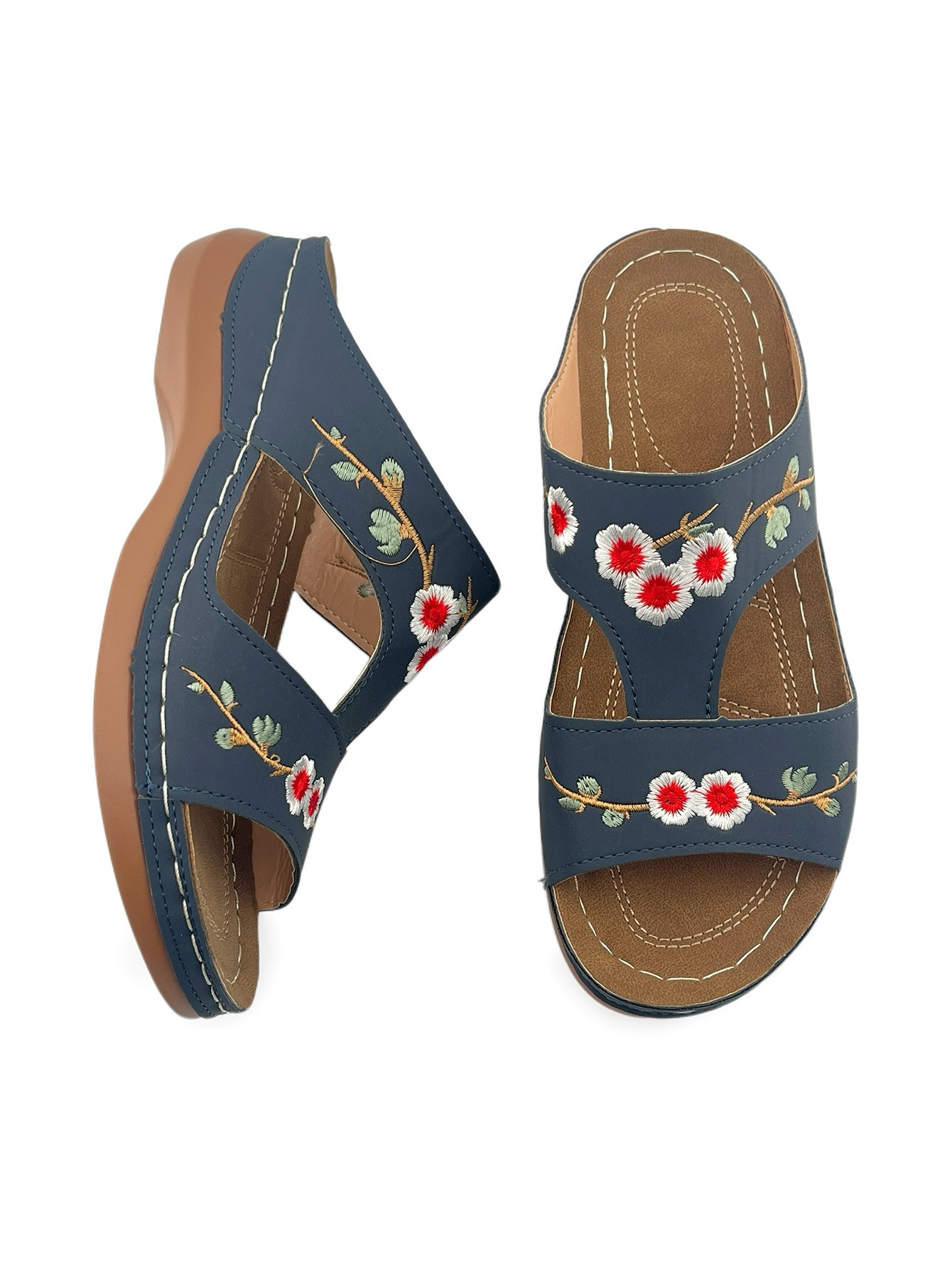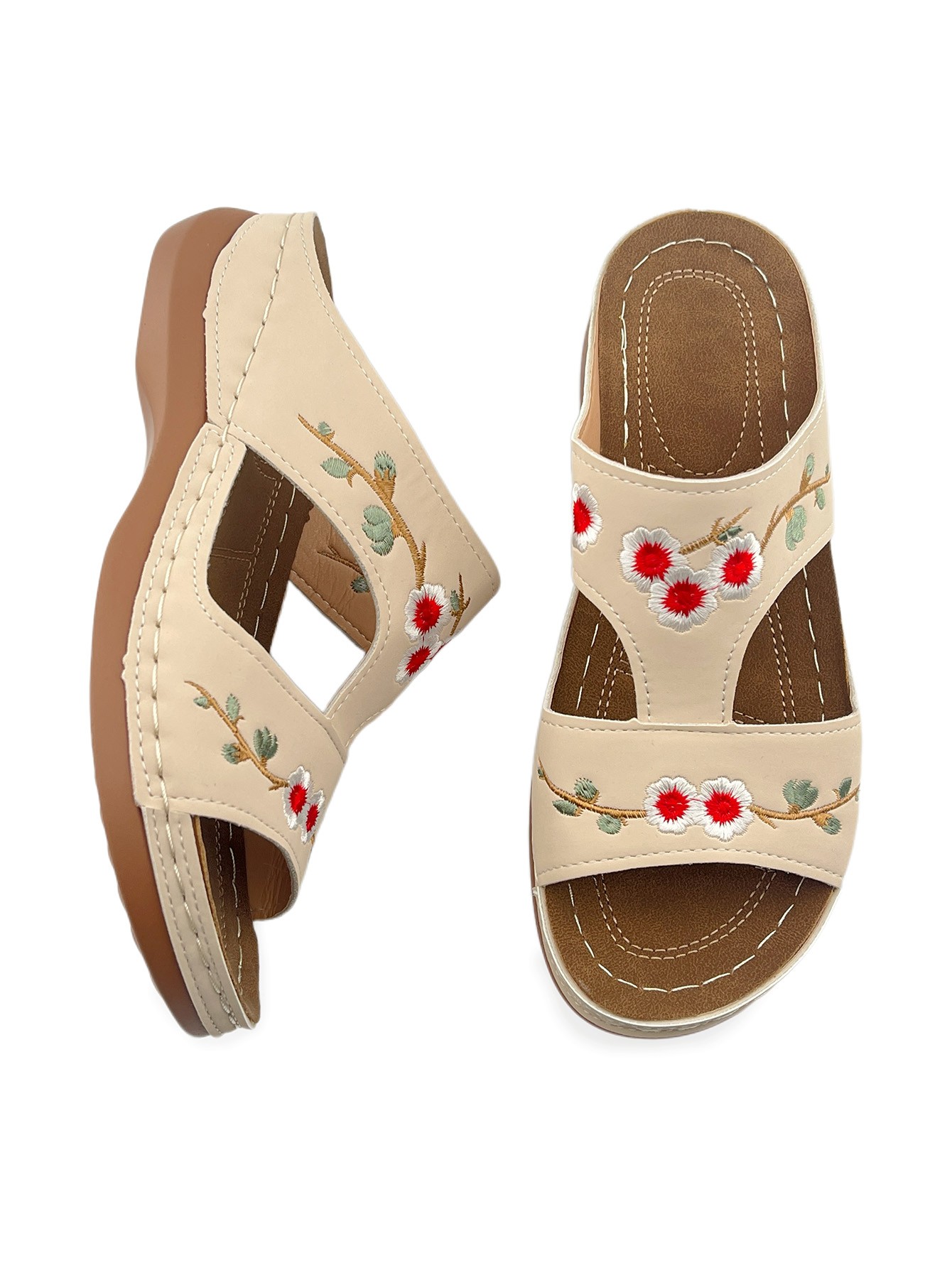 Vintage Embroidered Floral Sandals: Casual Outdoor Wedge-Heel Slip-On Sandals