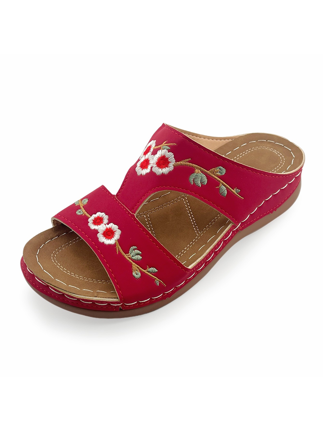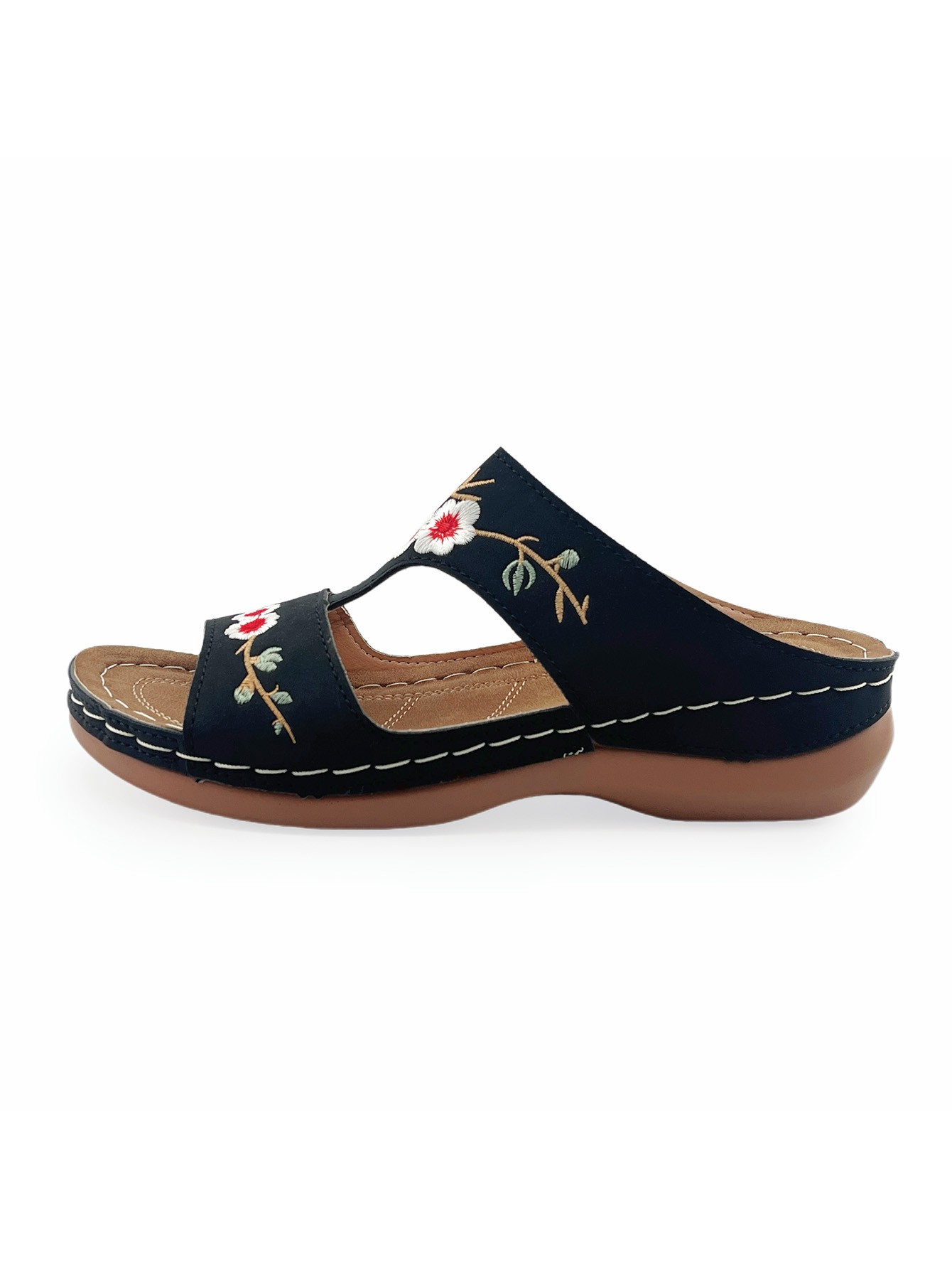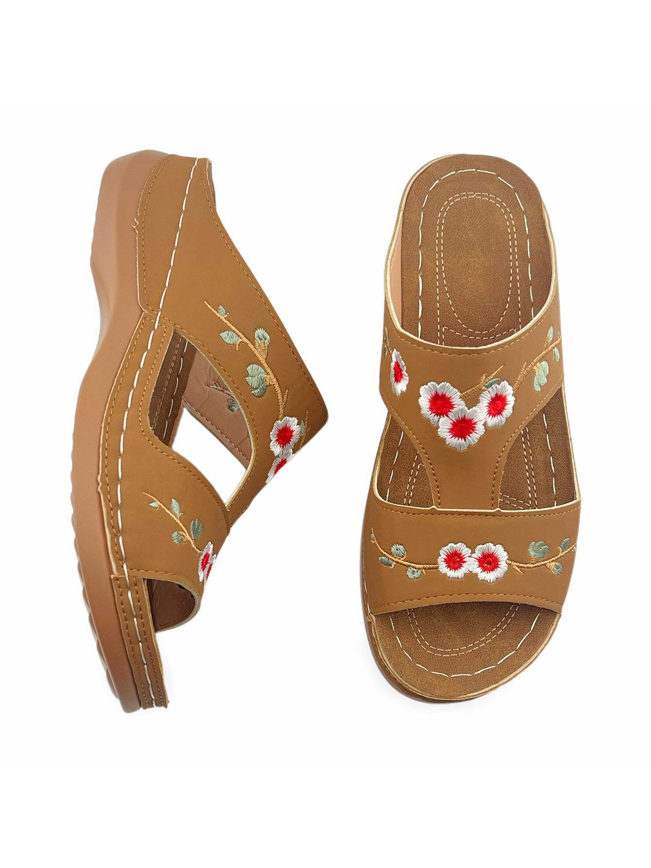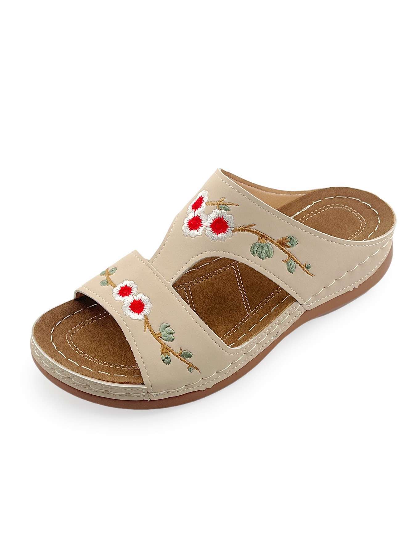 Vintage Embroidered Floral Sandals: Casual Outdoor Wedge-Heel Slip-On Sandals