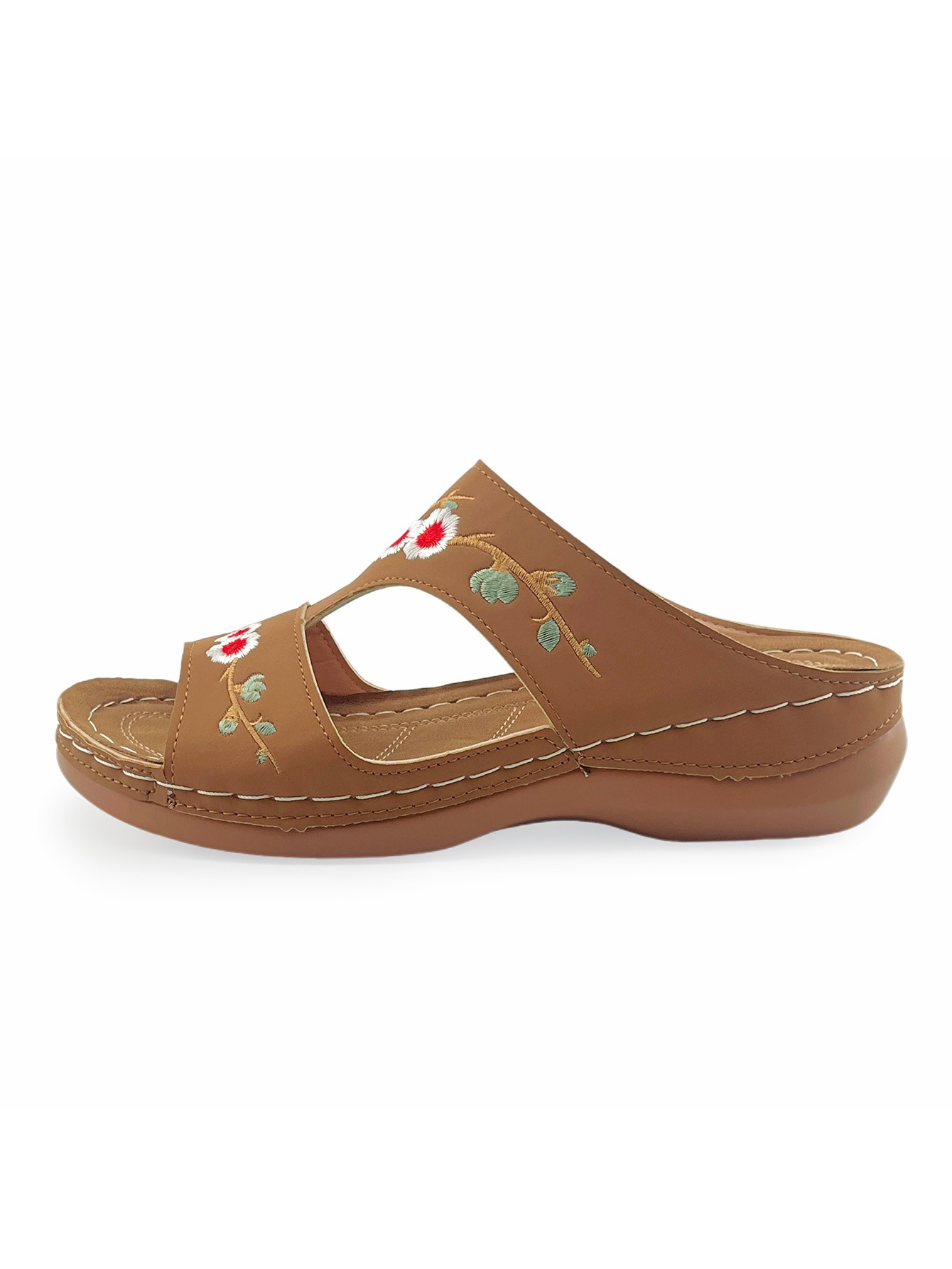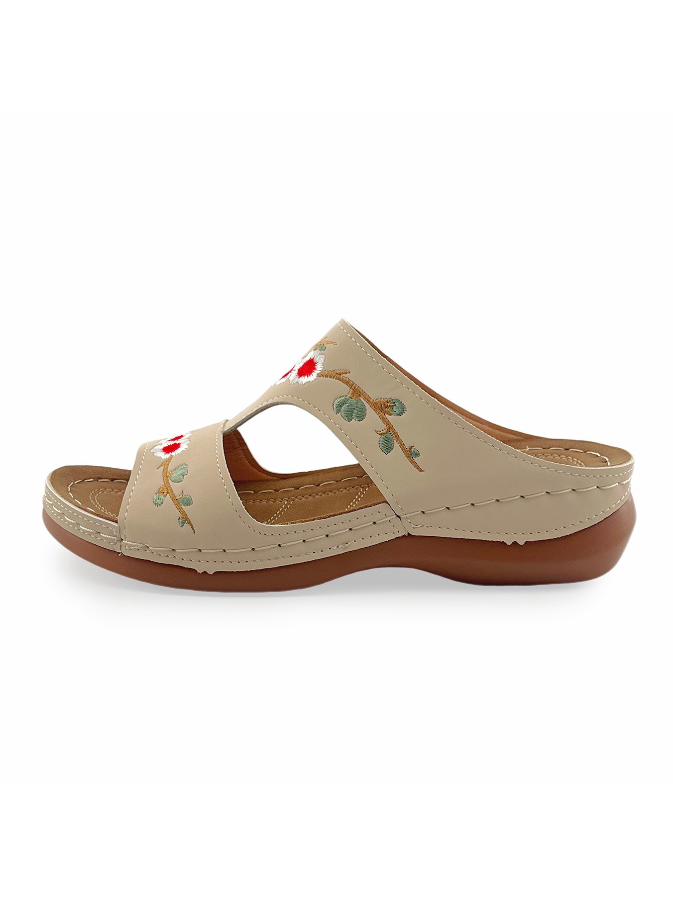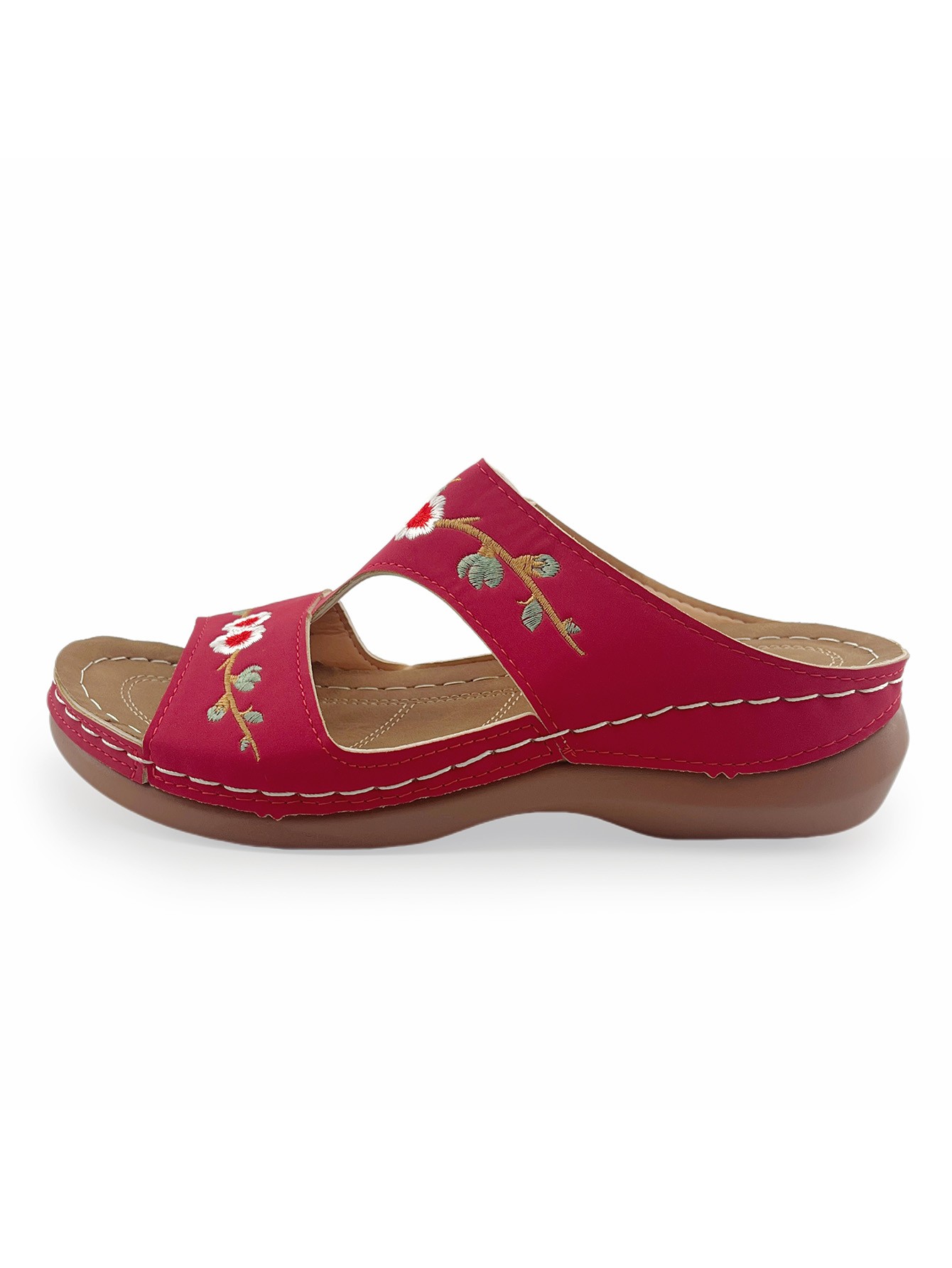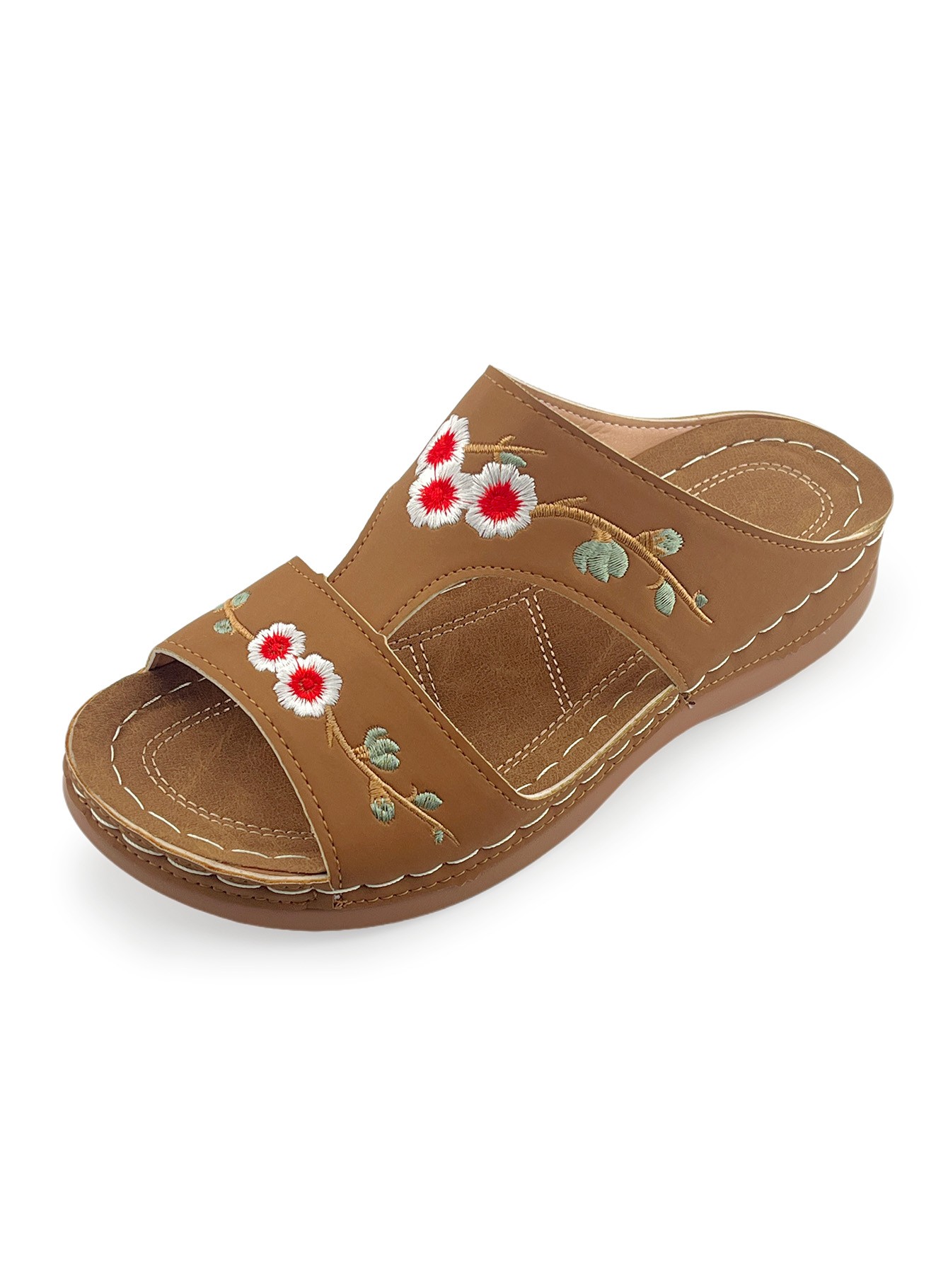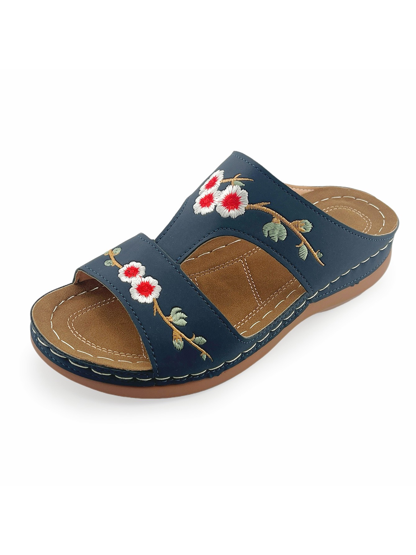 Vintage Embroidered Floral Sandals: Casual Outdoor Wedge-Heel Slip-On Sandals