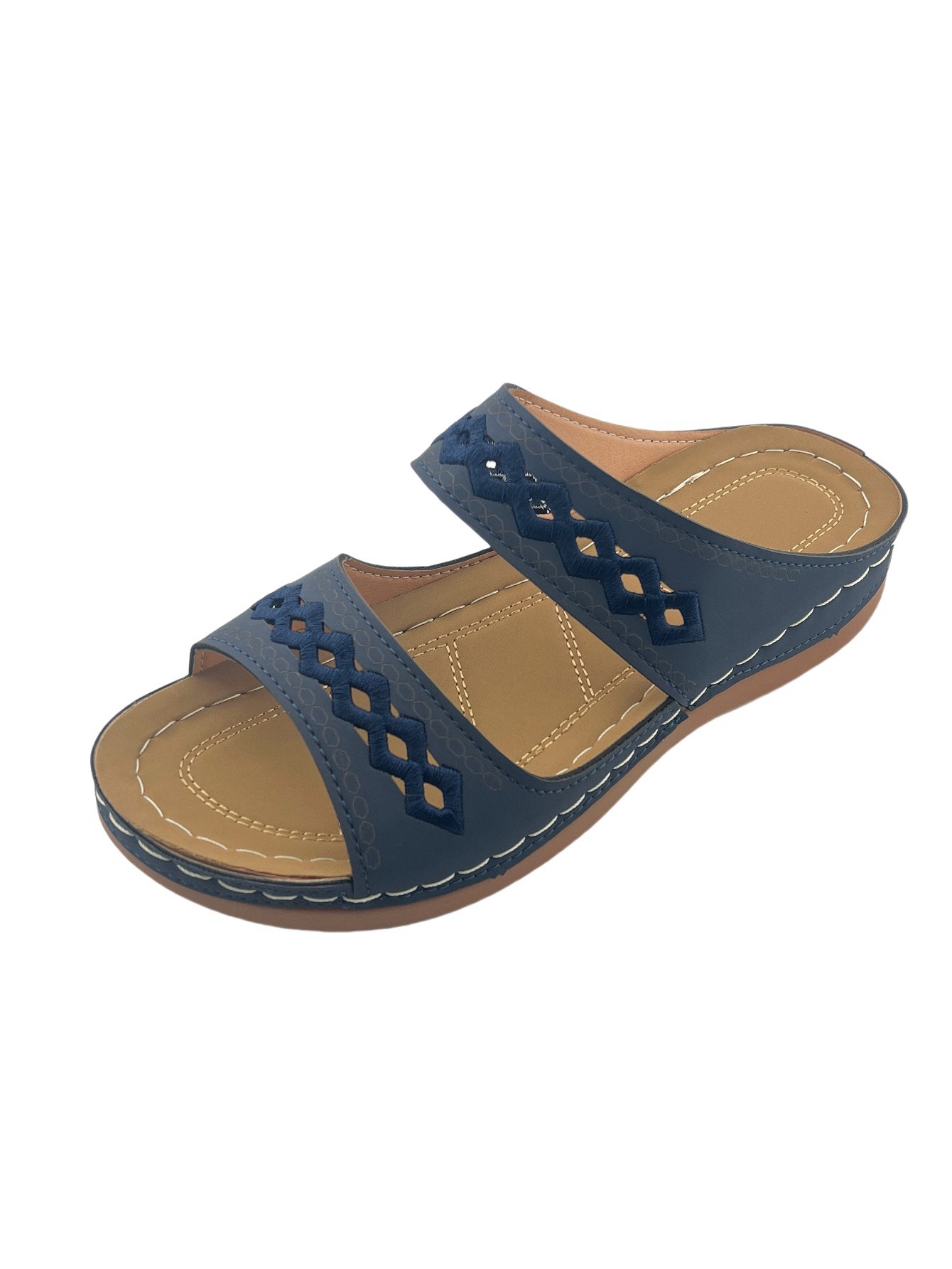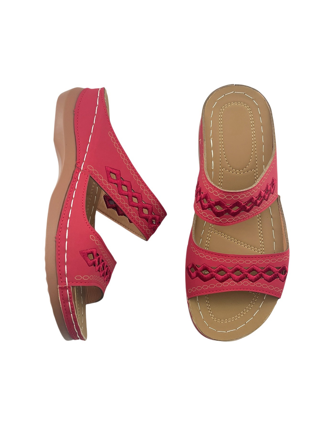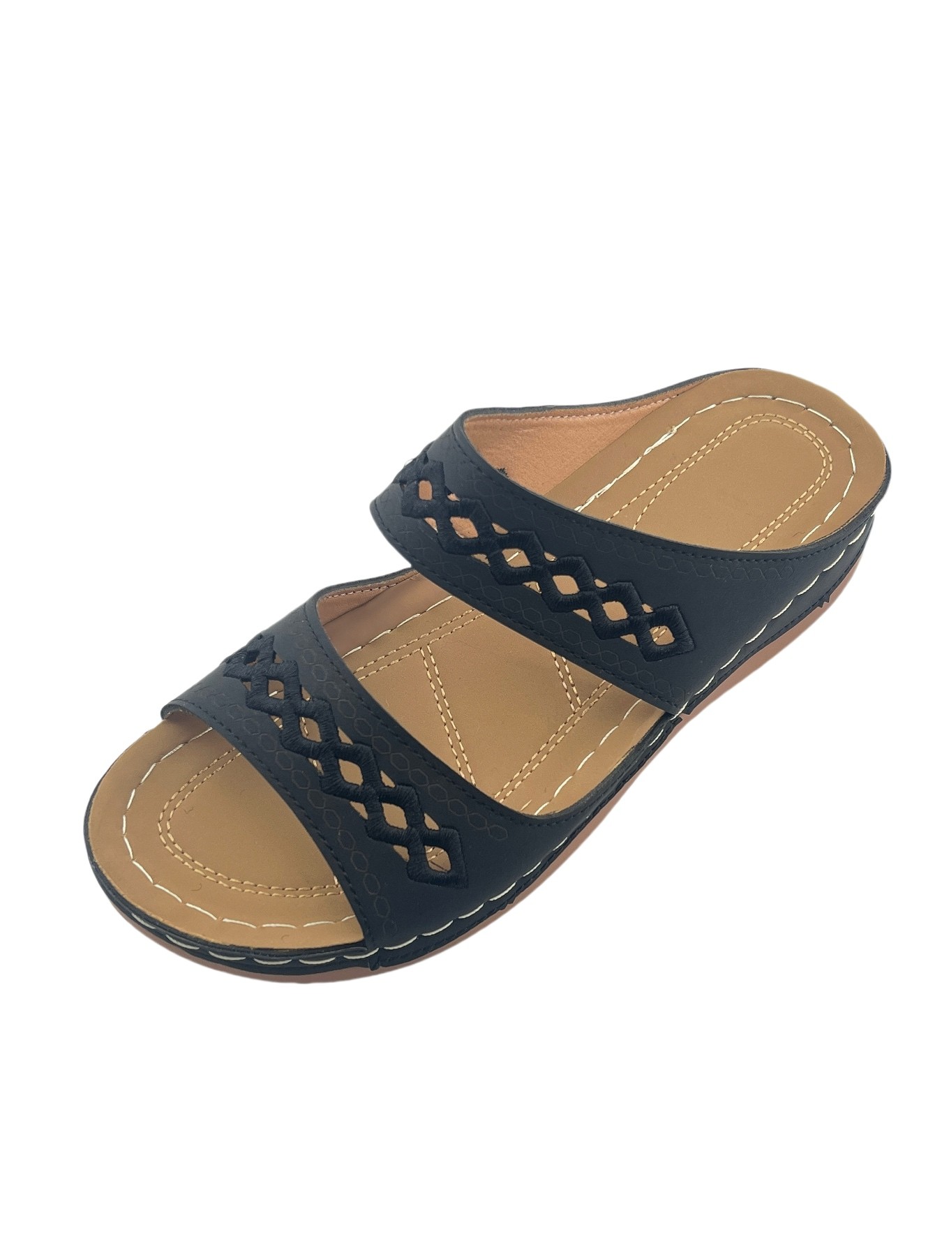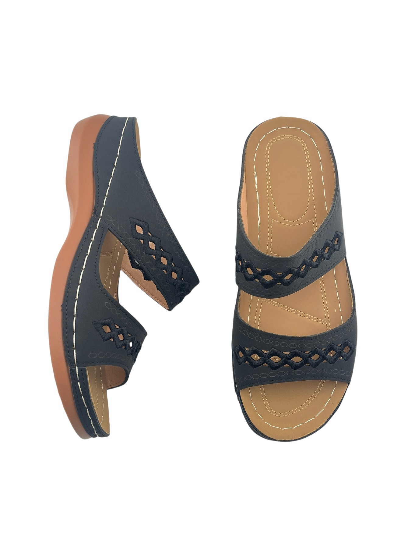 Women's Open-Toe Slip-On Sandals with Hollow-Out Design, Stitching Details, Lightweight & Breathable for Outdoor Wear