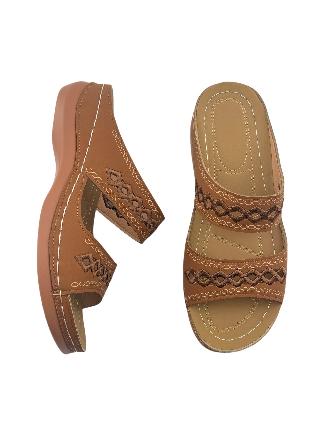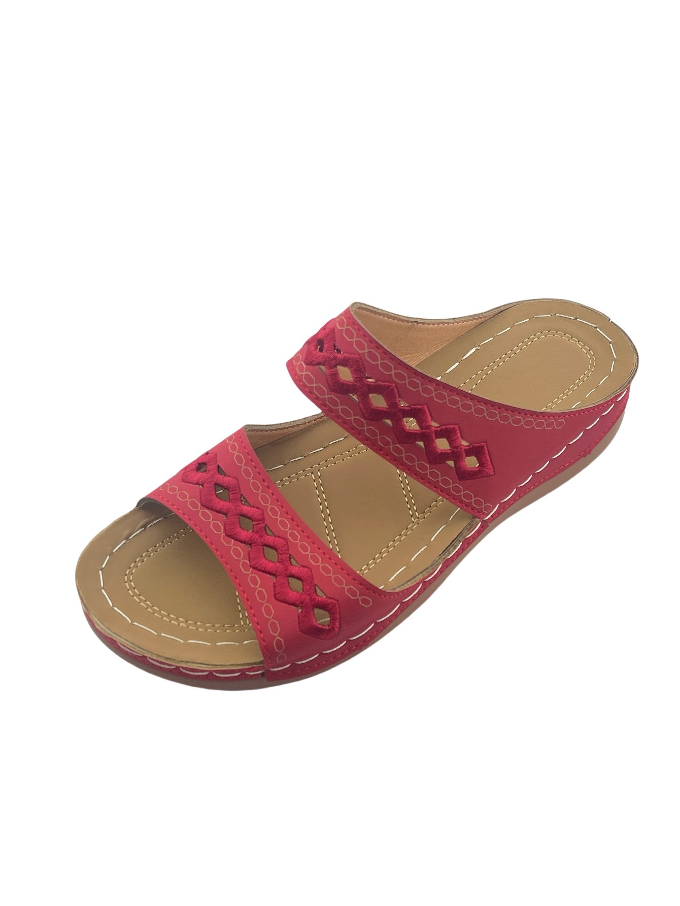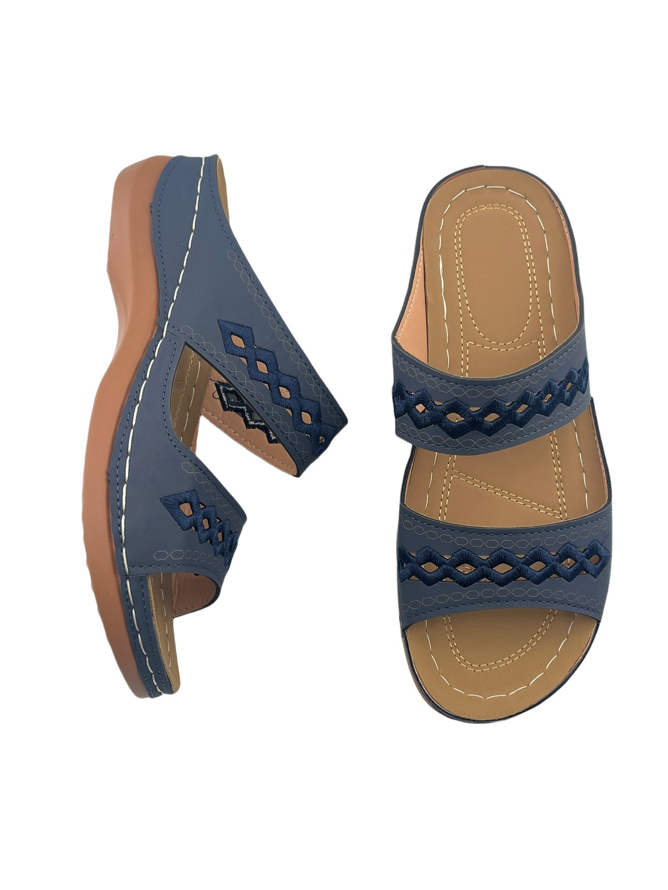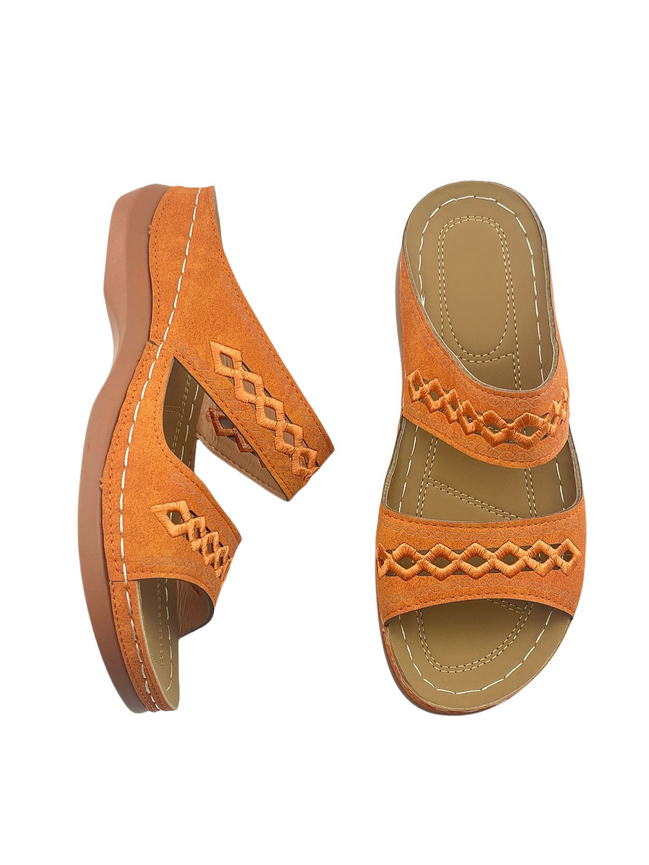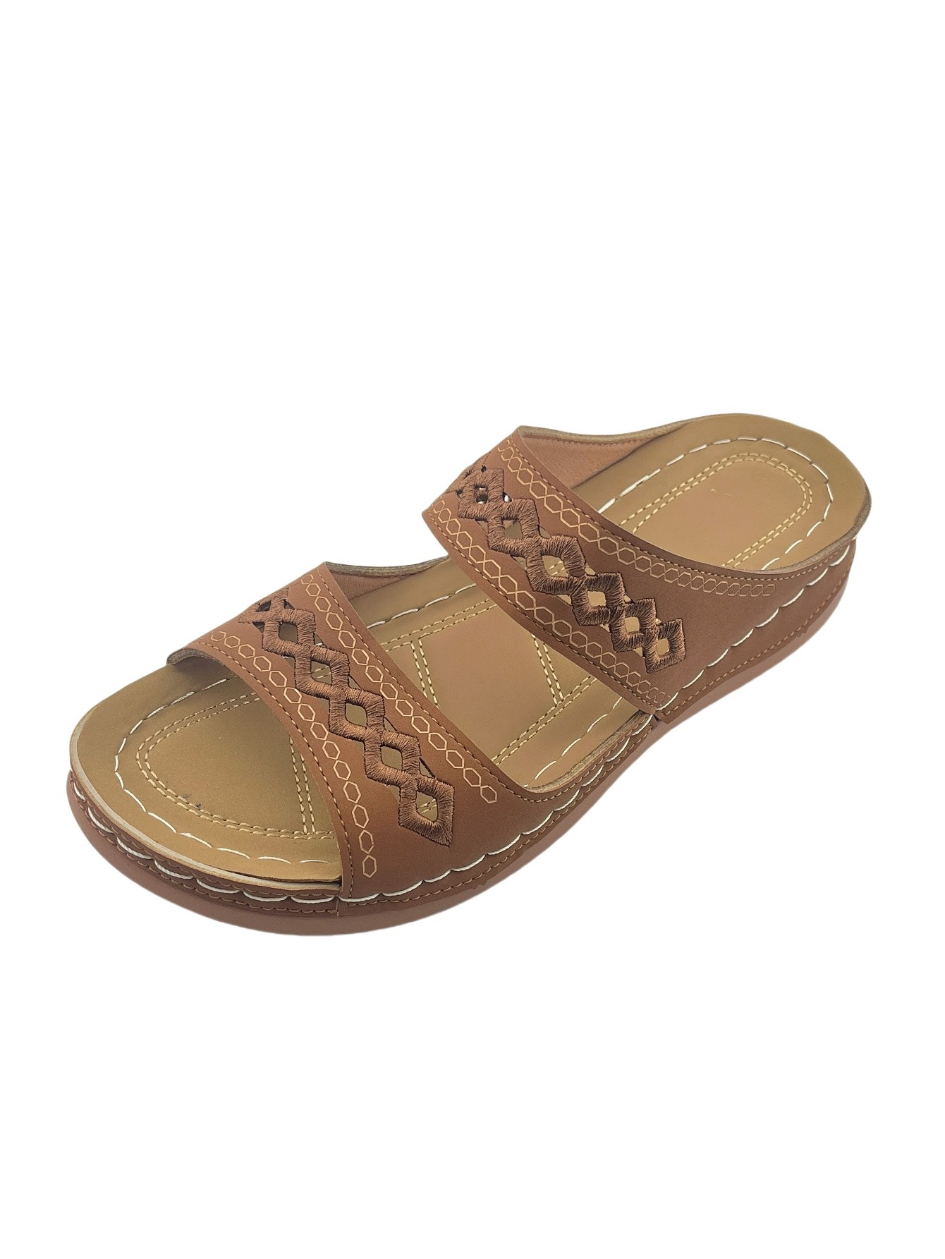 Women's Open-Toe Slip-On Sandals with Hollow-Out Design, Stitching Details, Lightweight & Breathable for Outdoor Wear
