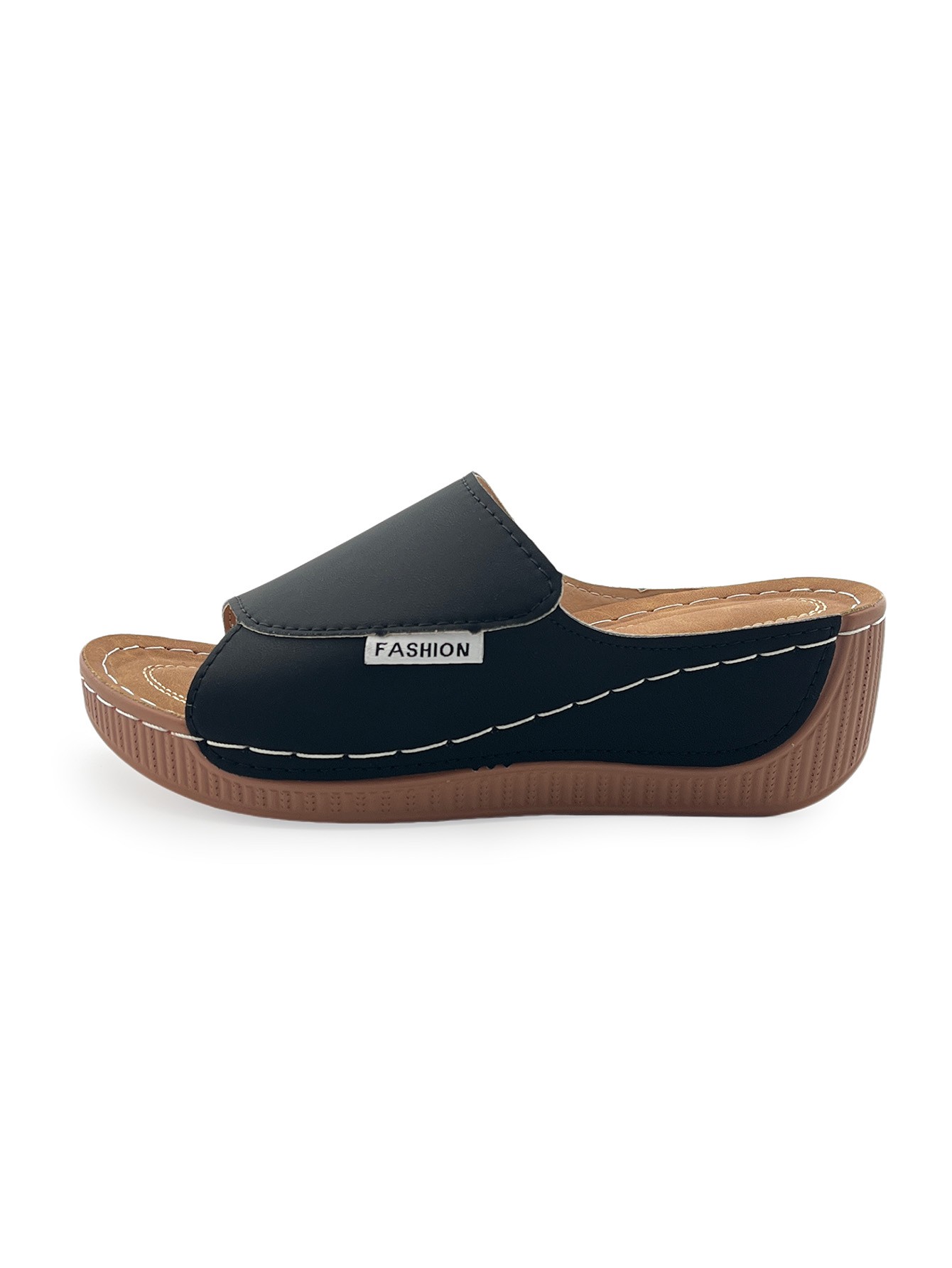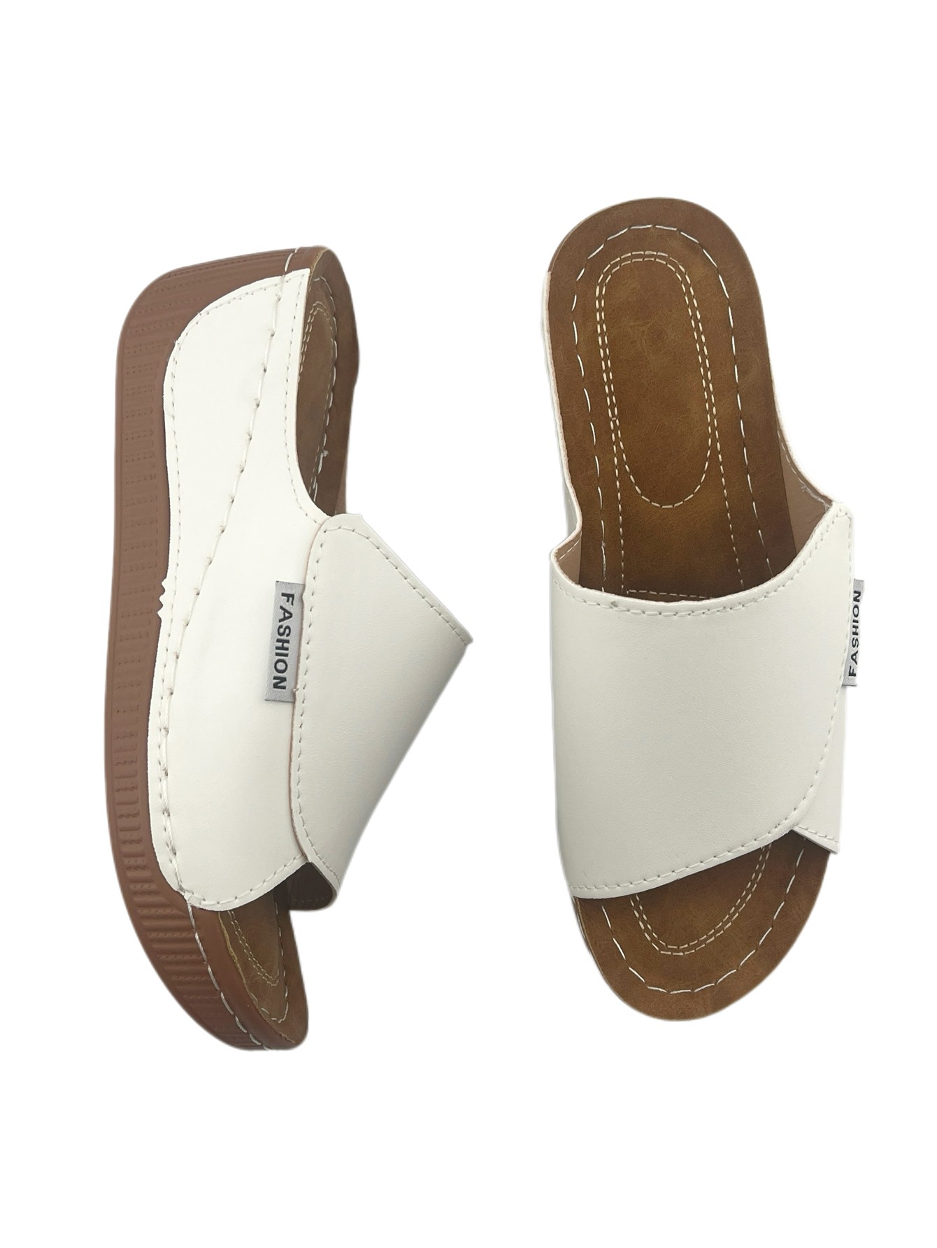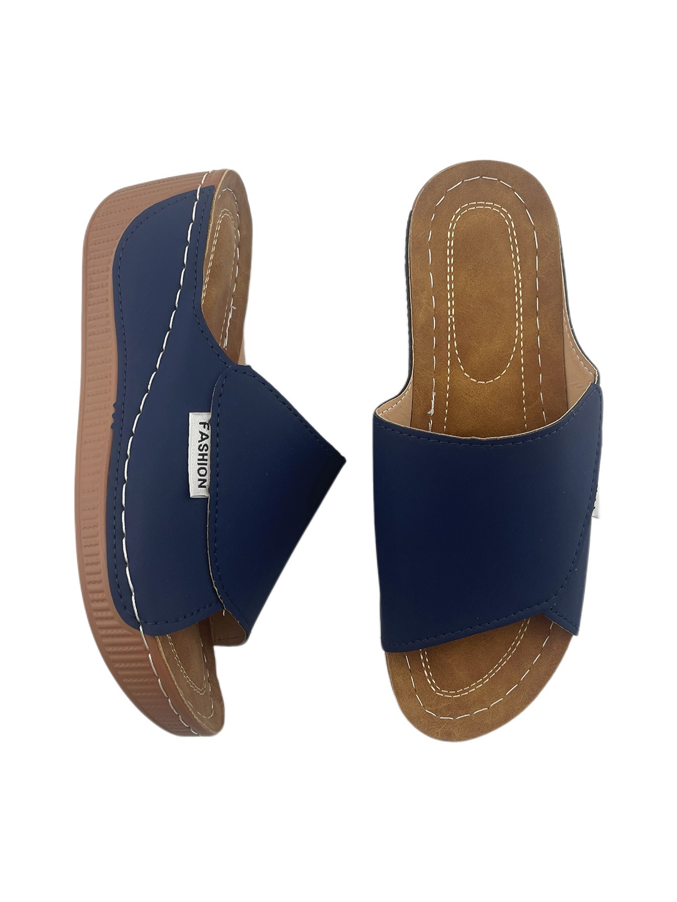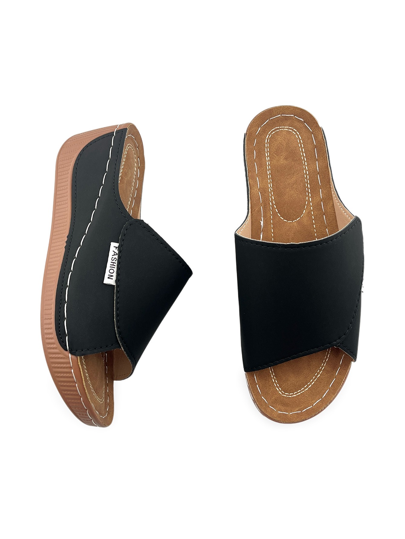 Fashionable Slip-on Flip-flops with Wedge Heel and Thick Sole